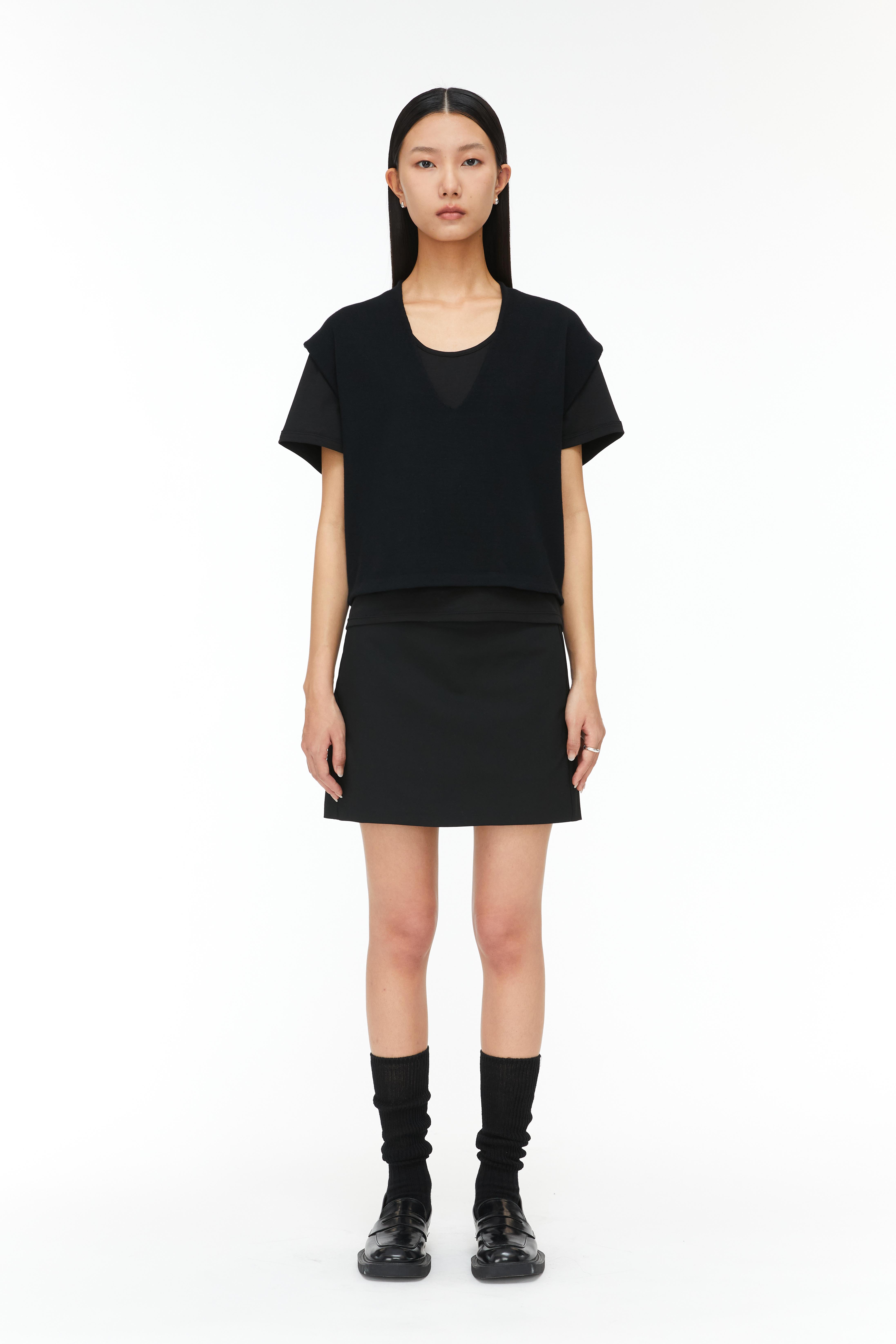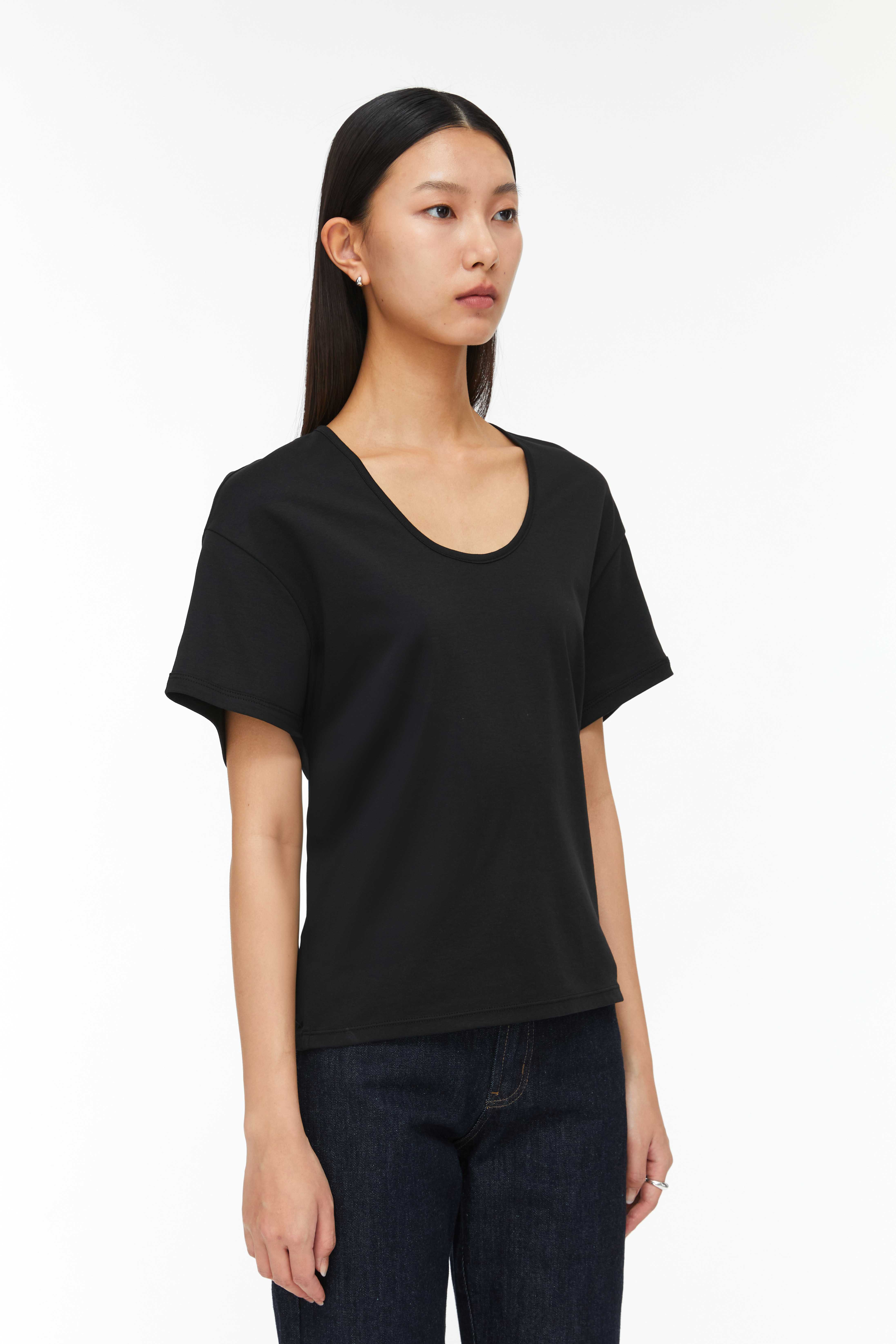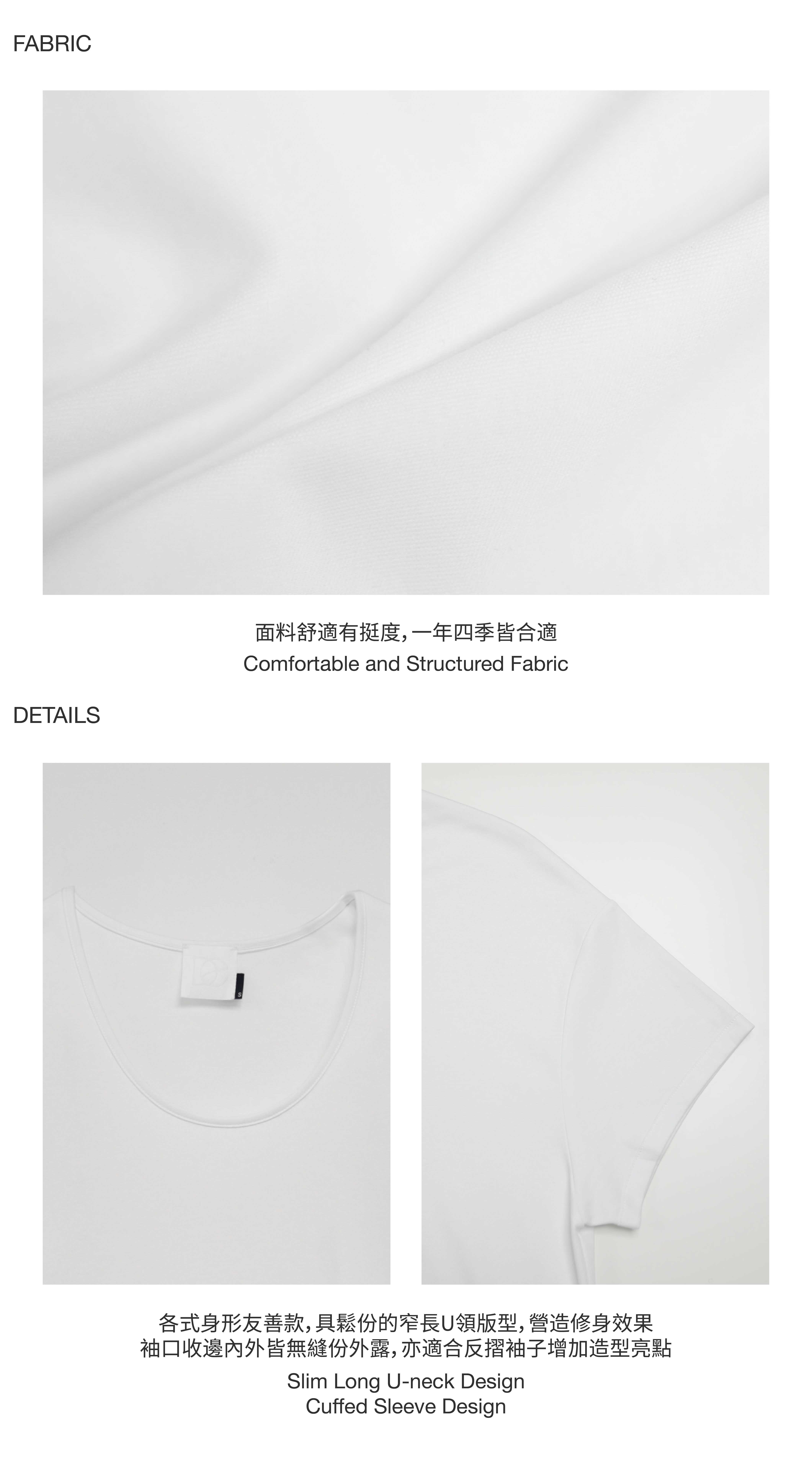 C-line -The inverted ladder version with loose content can modify the body shape and create a slender feeling. -U-neck design modifies the lines of the shoulders, neck and clavicle, and can be worn with a jacket to moderately reveal skin. -The fabric is comfortable and stiff, suitable for all seasons -The cuffs are seamlessly exposed both inside and outside, and are also suitable for folded sleeves to add styling highlights