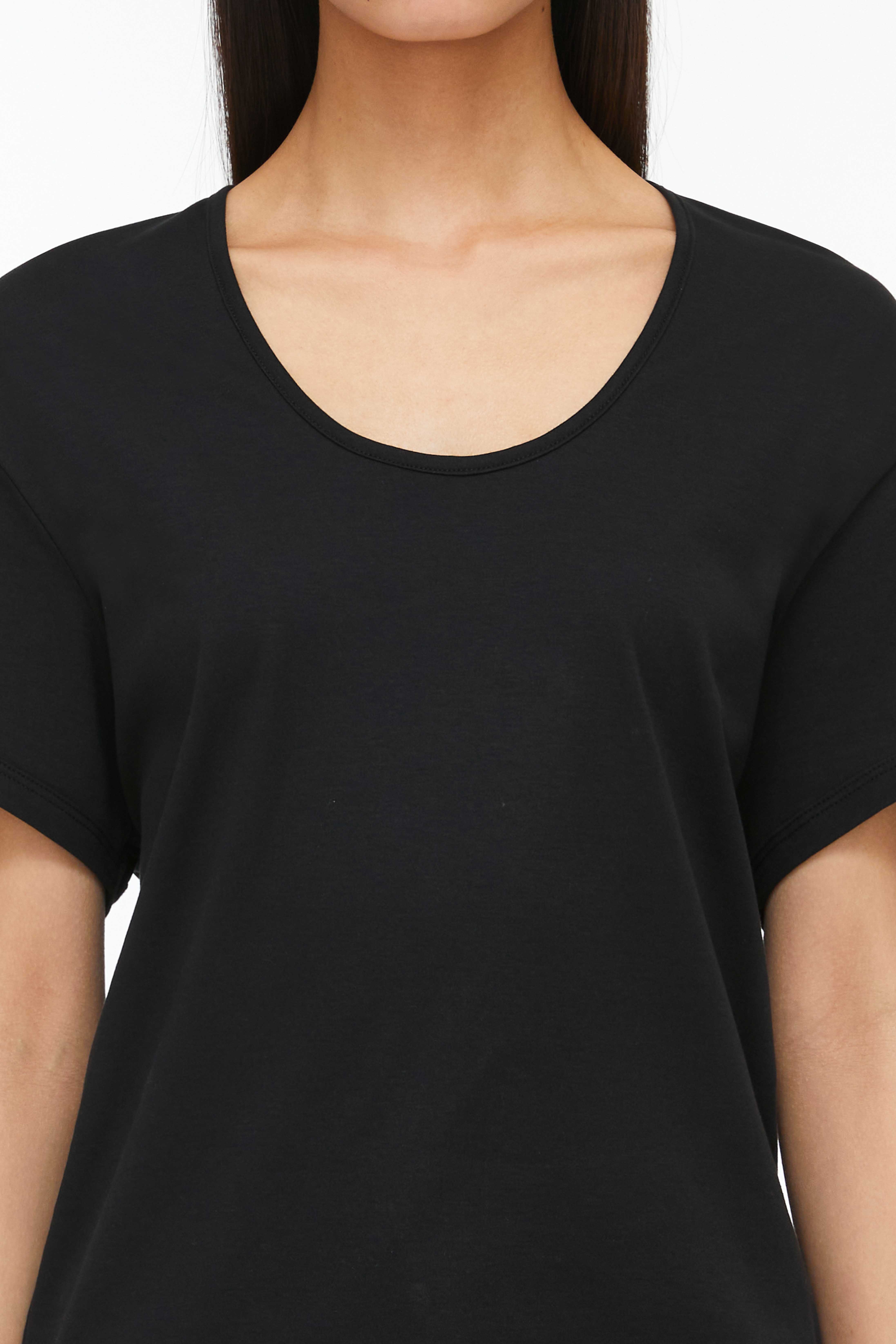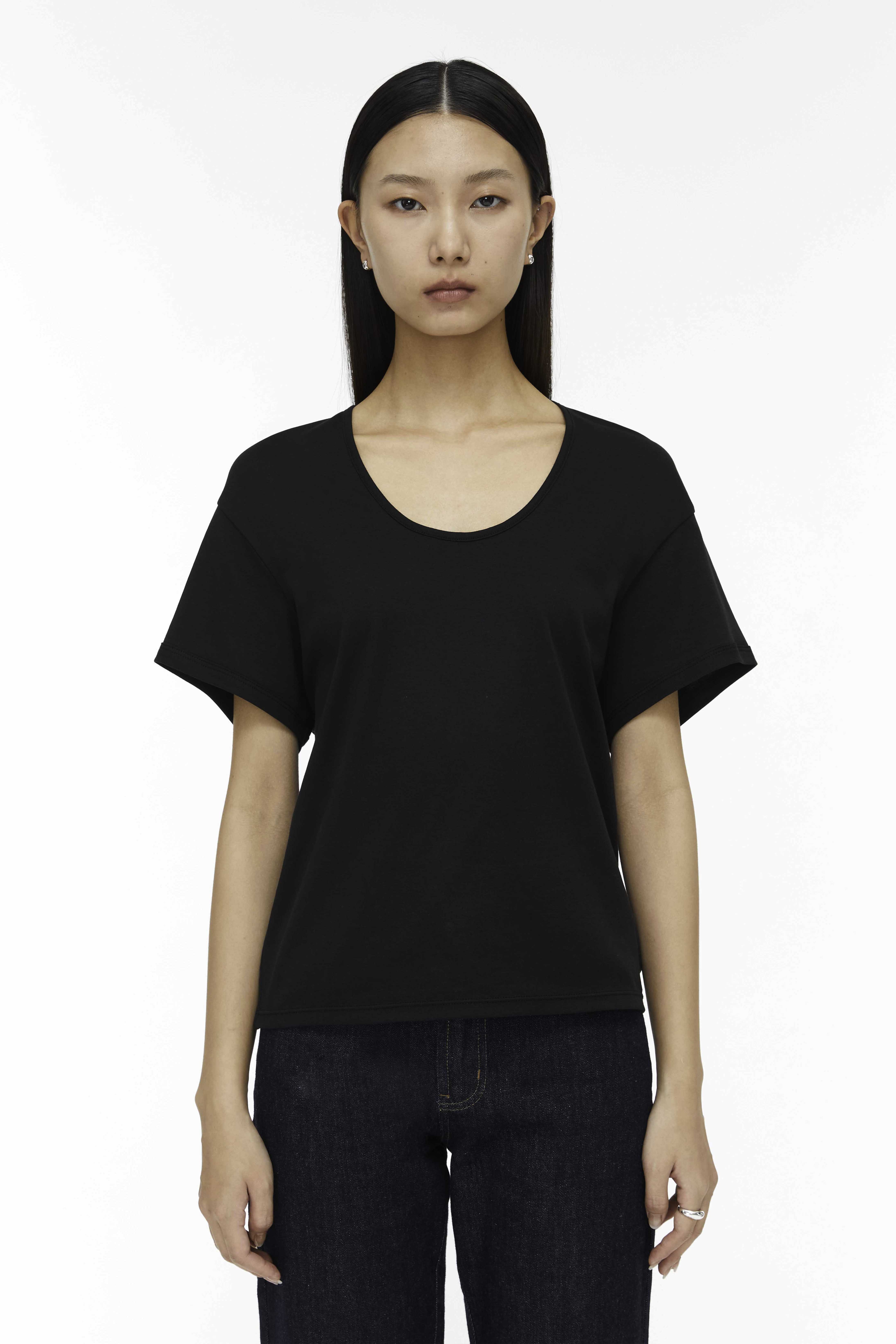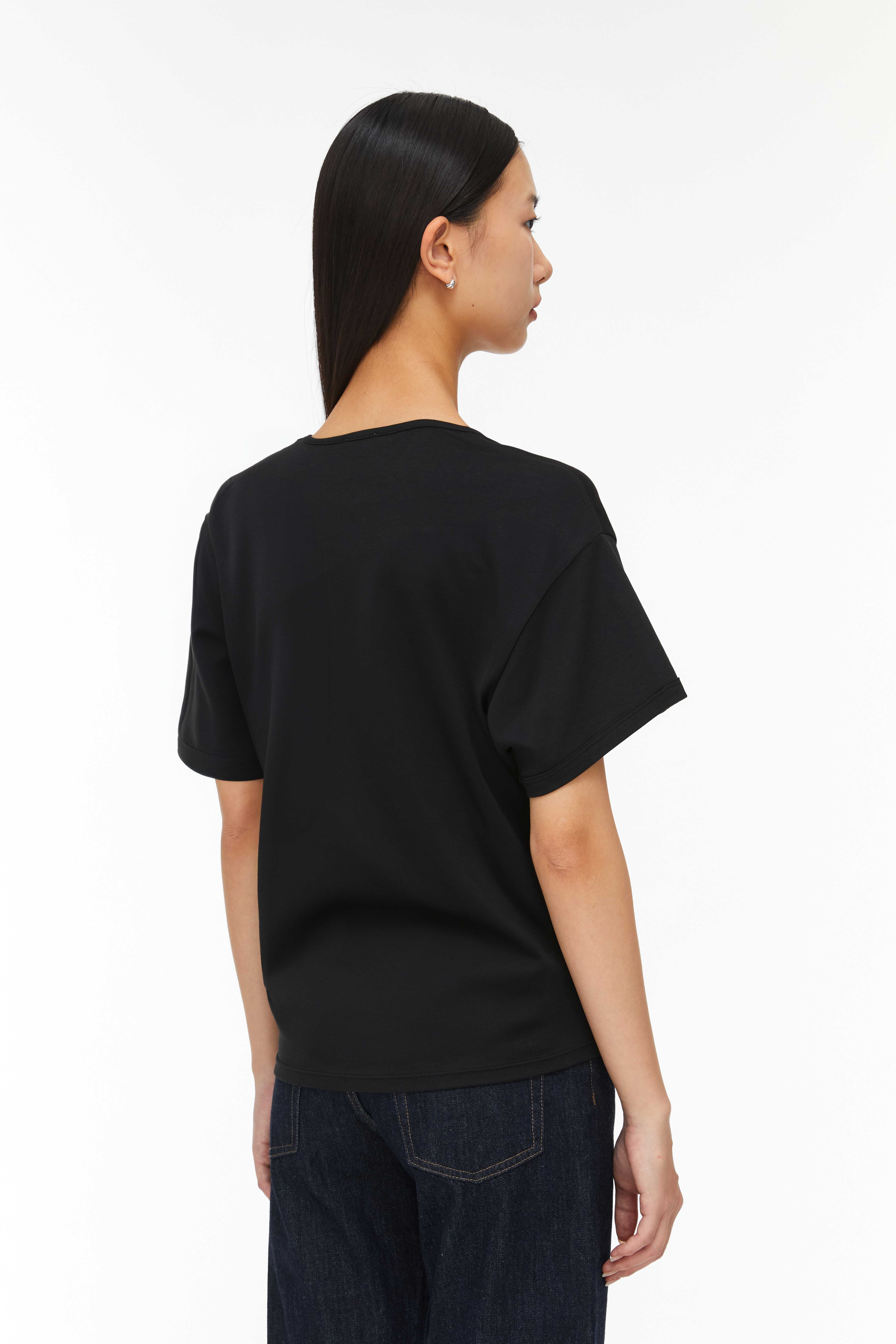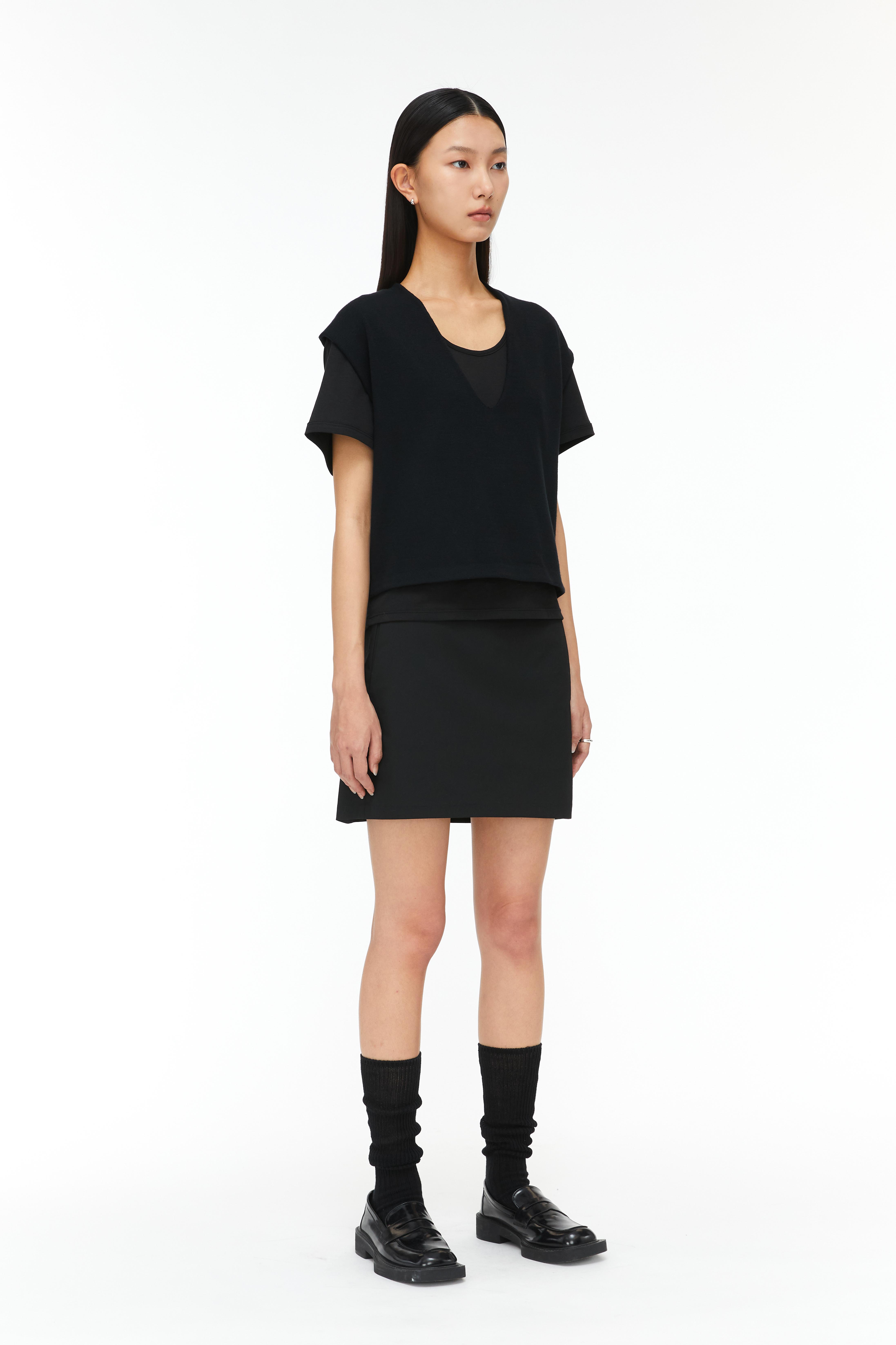 C-line -The inverted ladder version with loose content can modify the body shape and create a slender feeling. -U-neck design modifies the lines of the shoulders, neck and clavicle, and can be worn with a jacket to moderately reveal skin. -The fabric is comfortable and stiff, suitable for all seasons -The cuffs are seamlessly exposed both inside and outside, and are also suitable for folded sleeves to add styling highlights