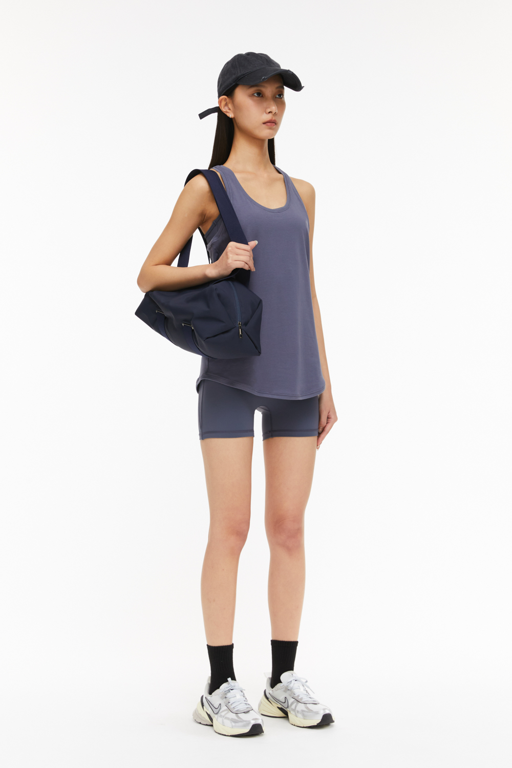 同步推薦搭配Y字細帶短背心,展現時髦層次穿搭