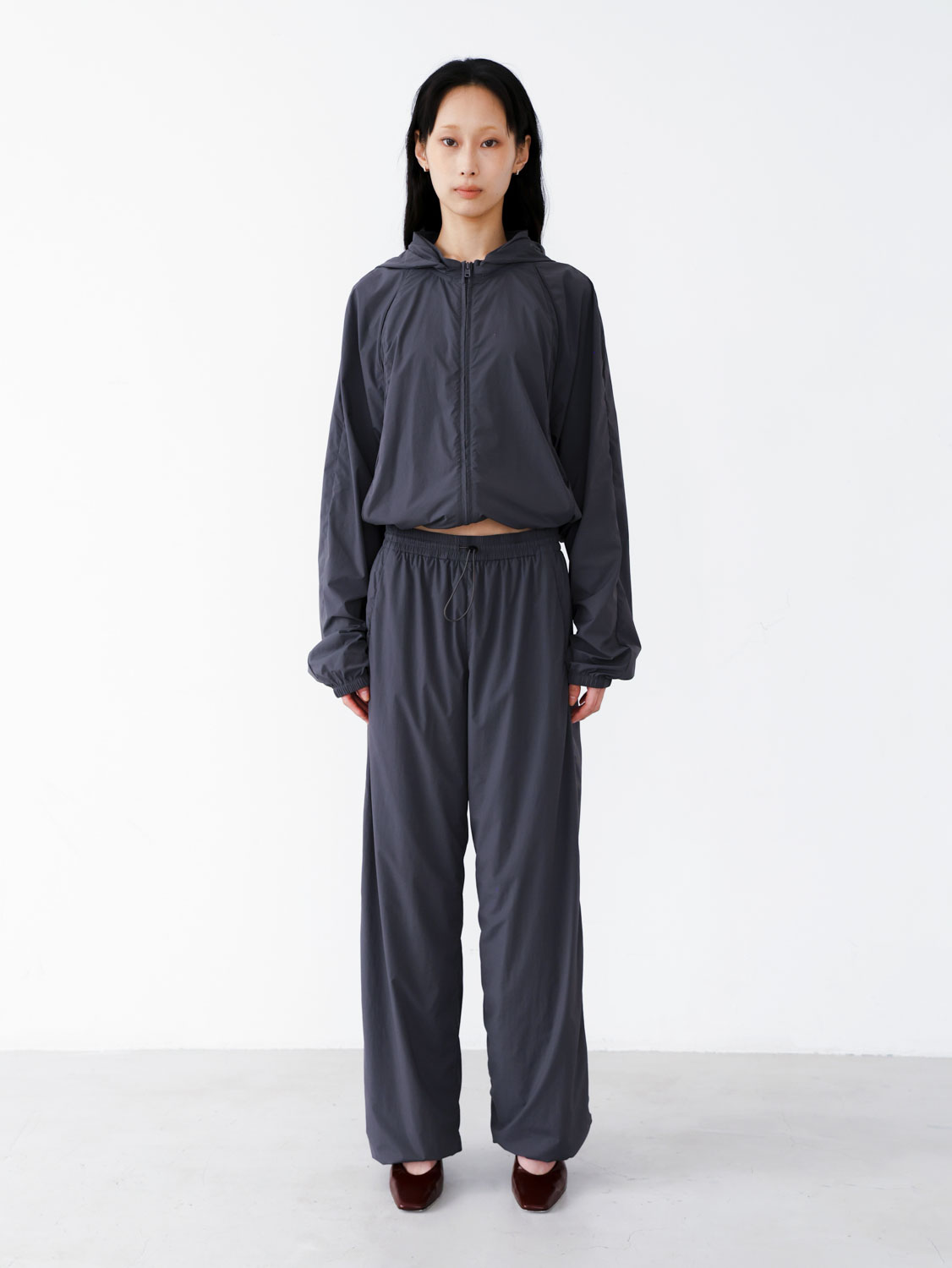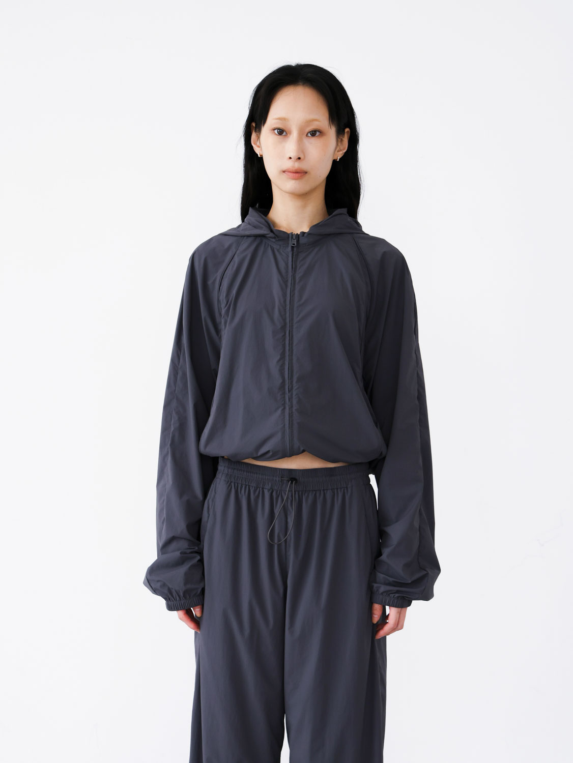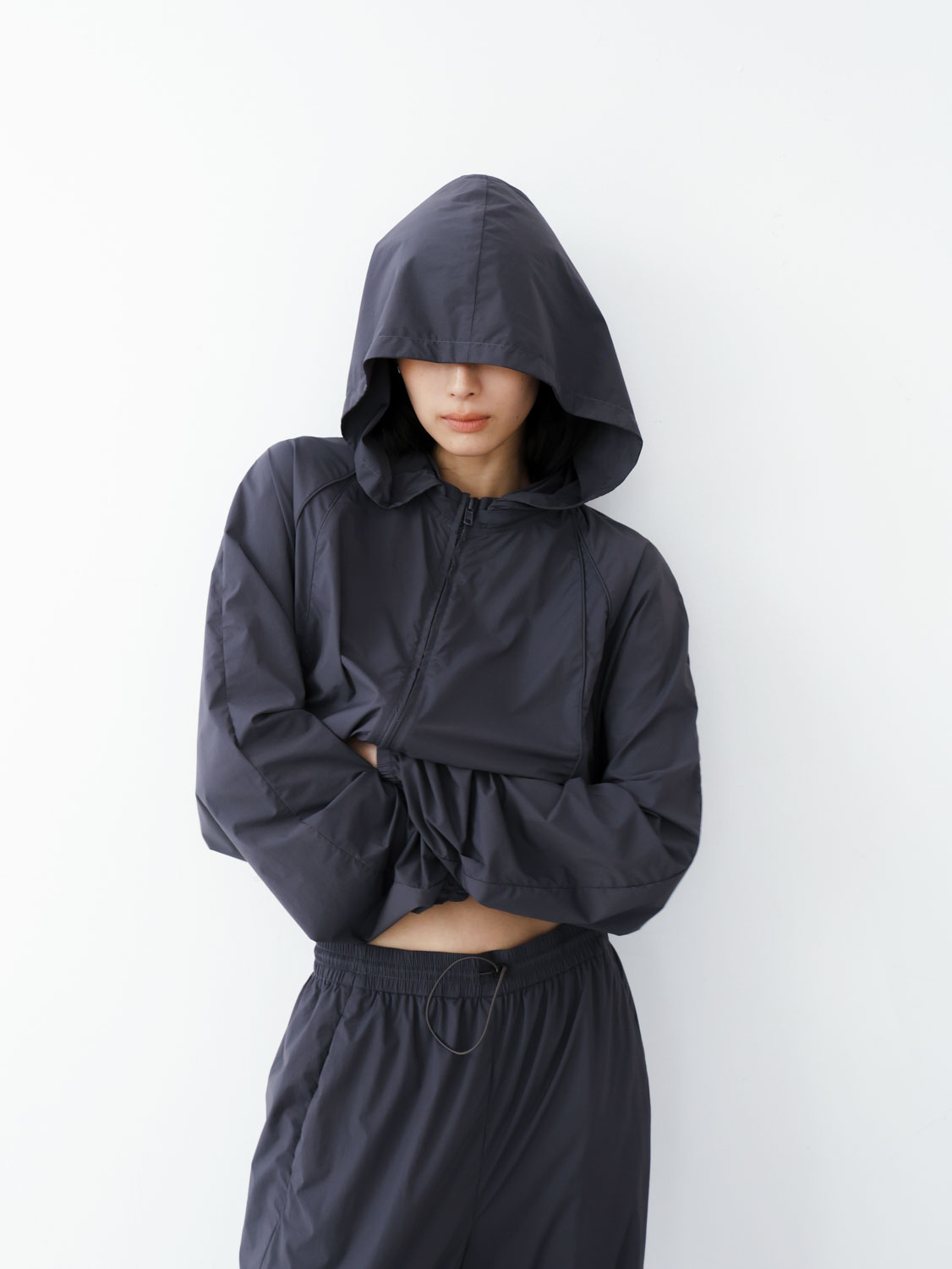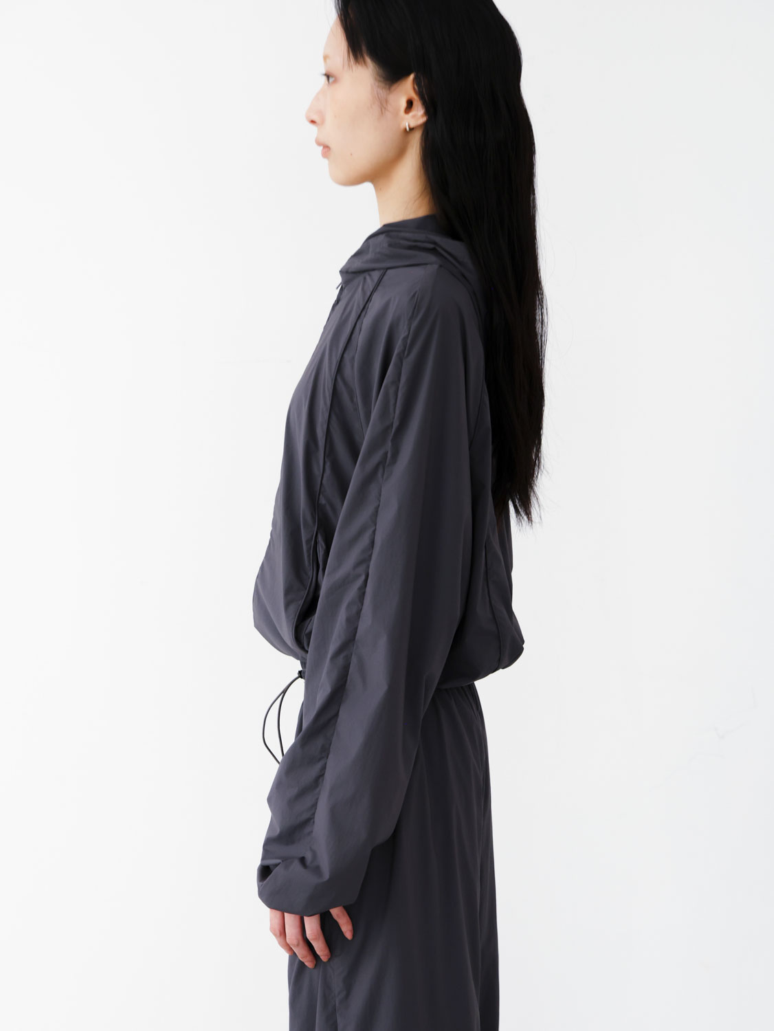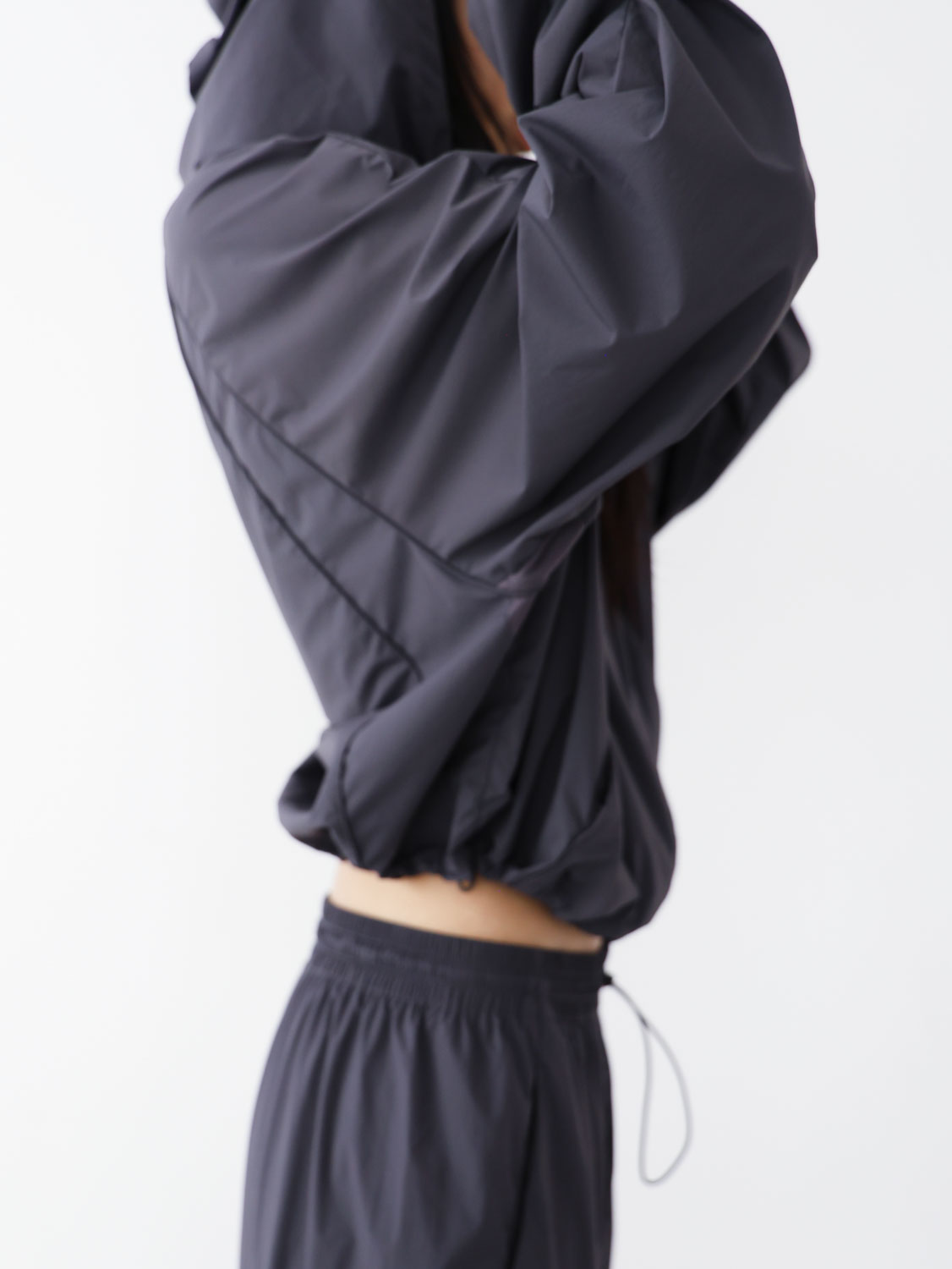 -下襬束繩短版剪裁,結合寬袖設計,呈現整體立體廓型