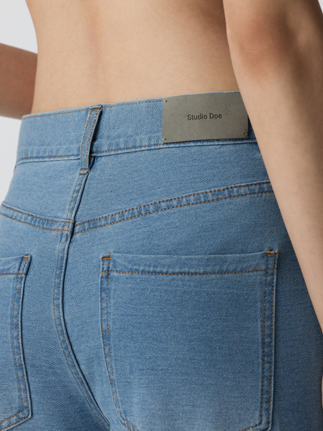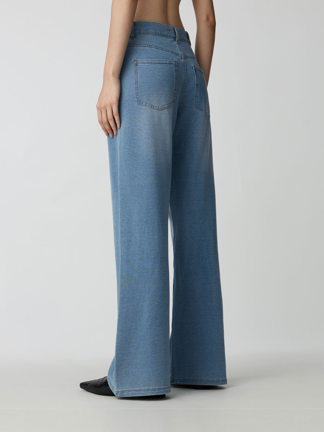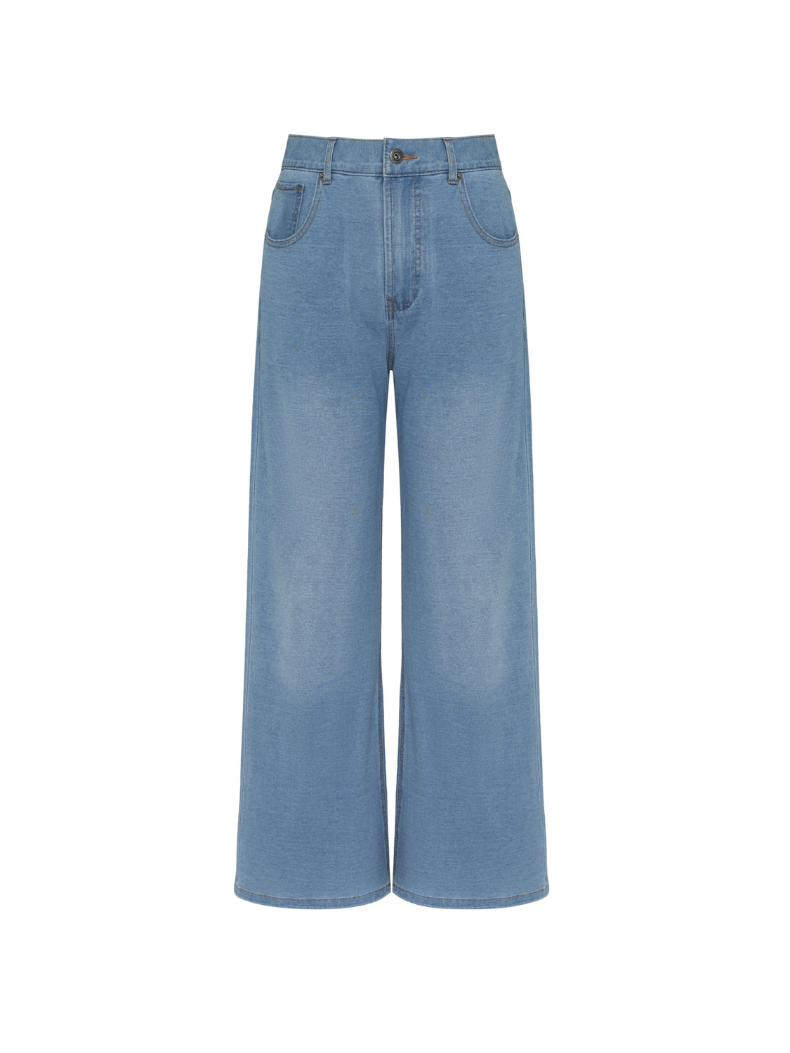 C-line - Light, stiff and soft knitted denim fabric with elasticity, creating an overall casual and handsome look -Mid-length micro-flared version with loose content, leg seam design makes it visually slimmer -Thighs are naturally colored with narrow lines