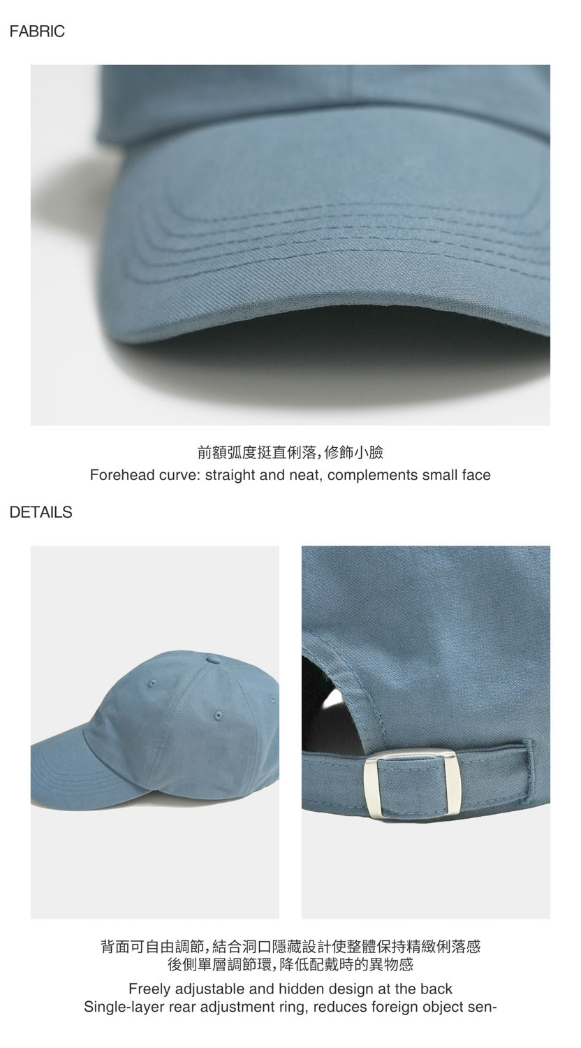 C-line -The forehead curvature is straight and neat and flatters the small face -The hat is high and deep, modifying the face shape and suitable for various head shapes -The back can be adjusted freely, combined with the hole-hiding design to maintain a refined and neat look overall. -A single-layer adjustment ring on the back of the head makes the overall vision simpler and reduces the foreign body sensation when wearing it.
