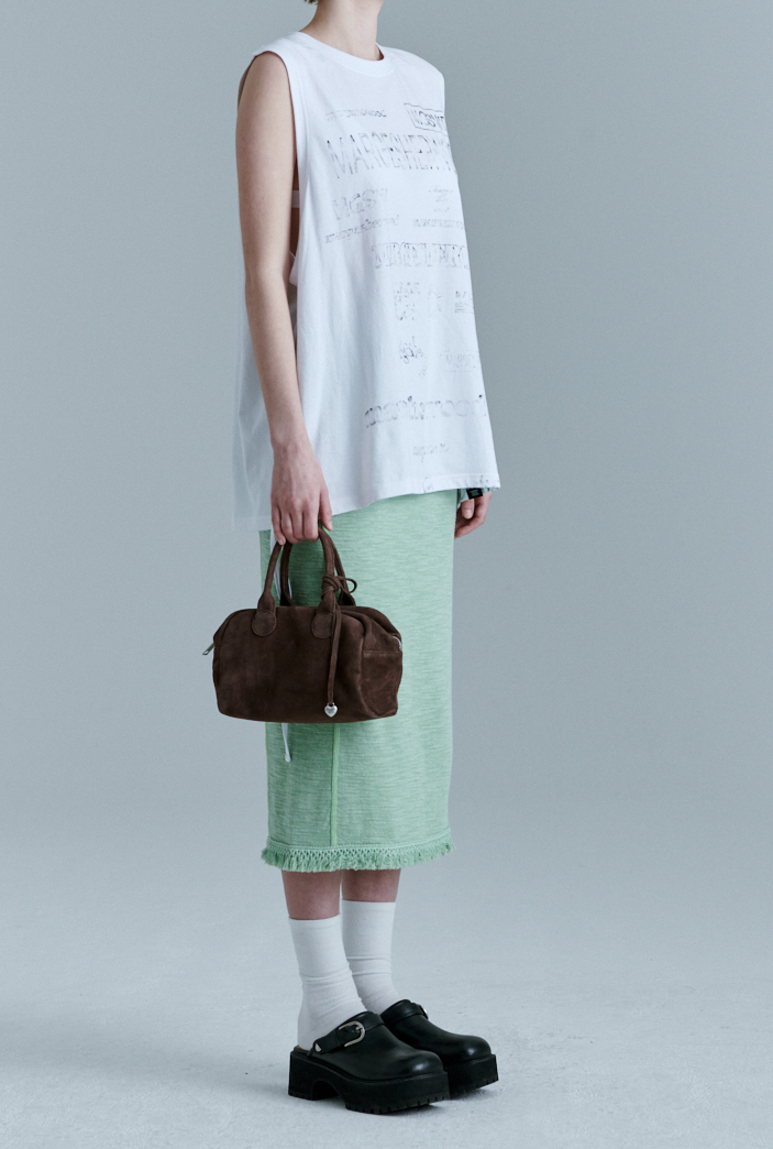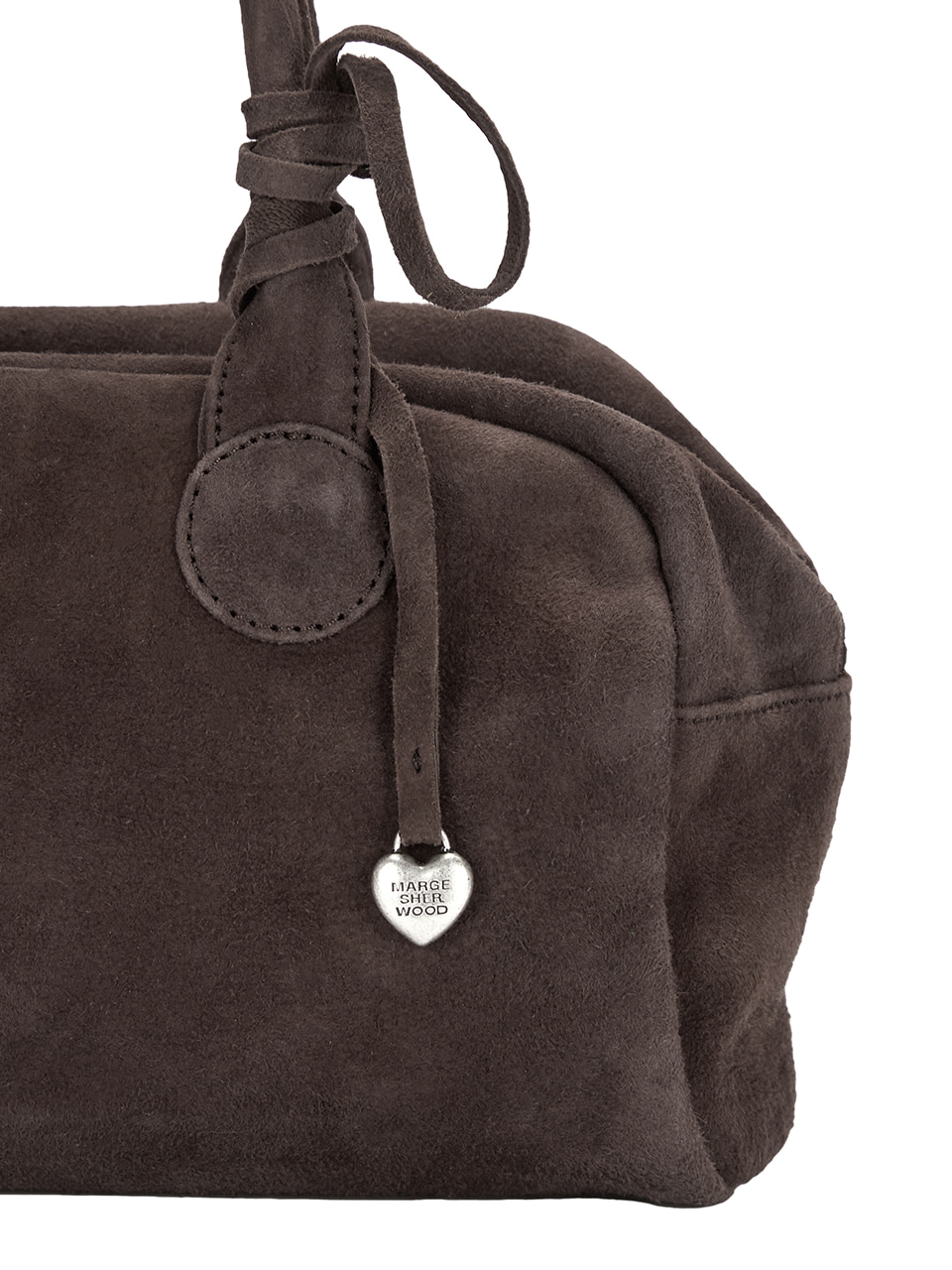 · 附刻有MARGESHERWOOD LOGO標誌的可拆式麂皮心型吊飾