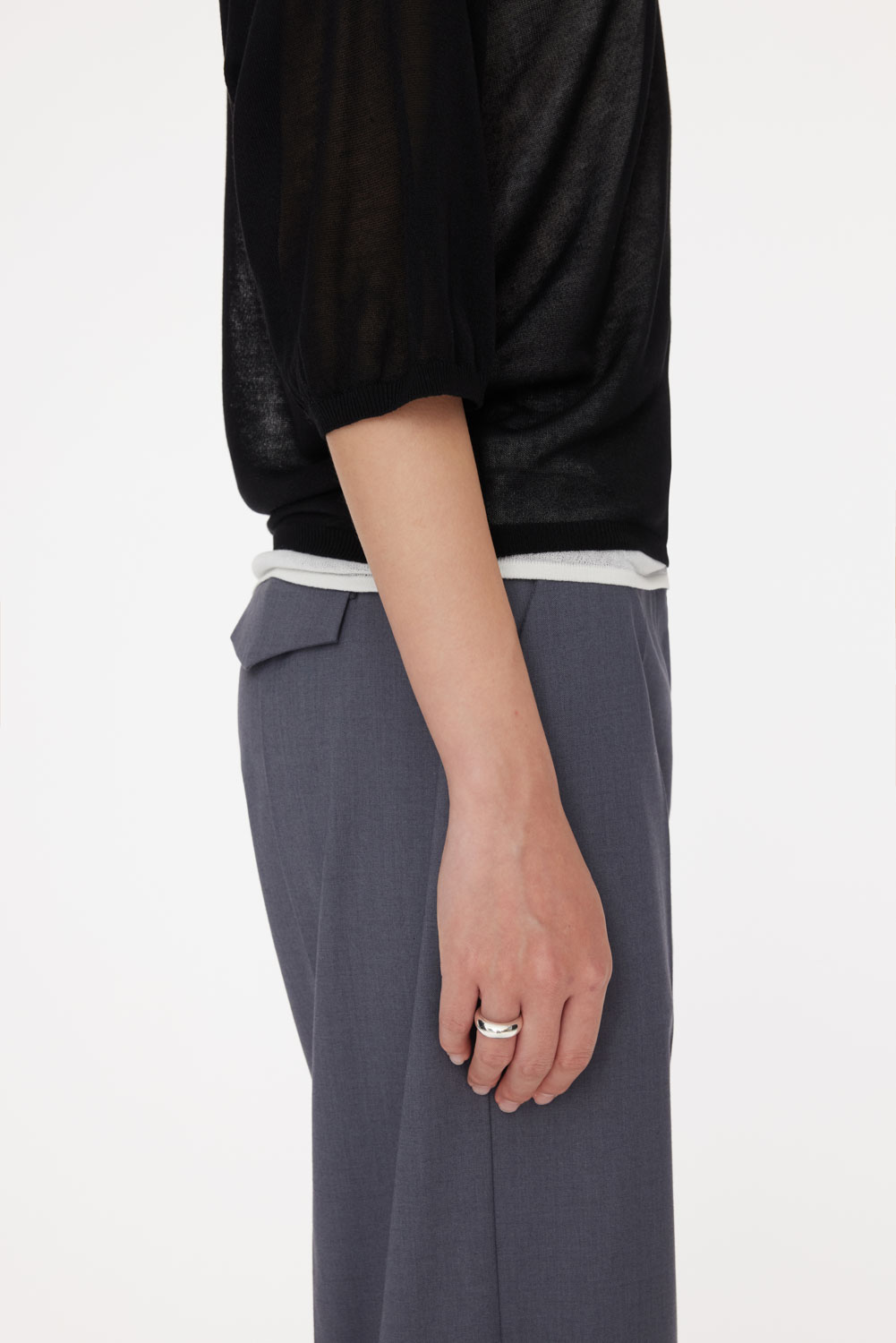 •微弧型袖口,袖口刻意收小 ,堆積或捲袖起來效果更明顯-