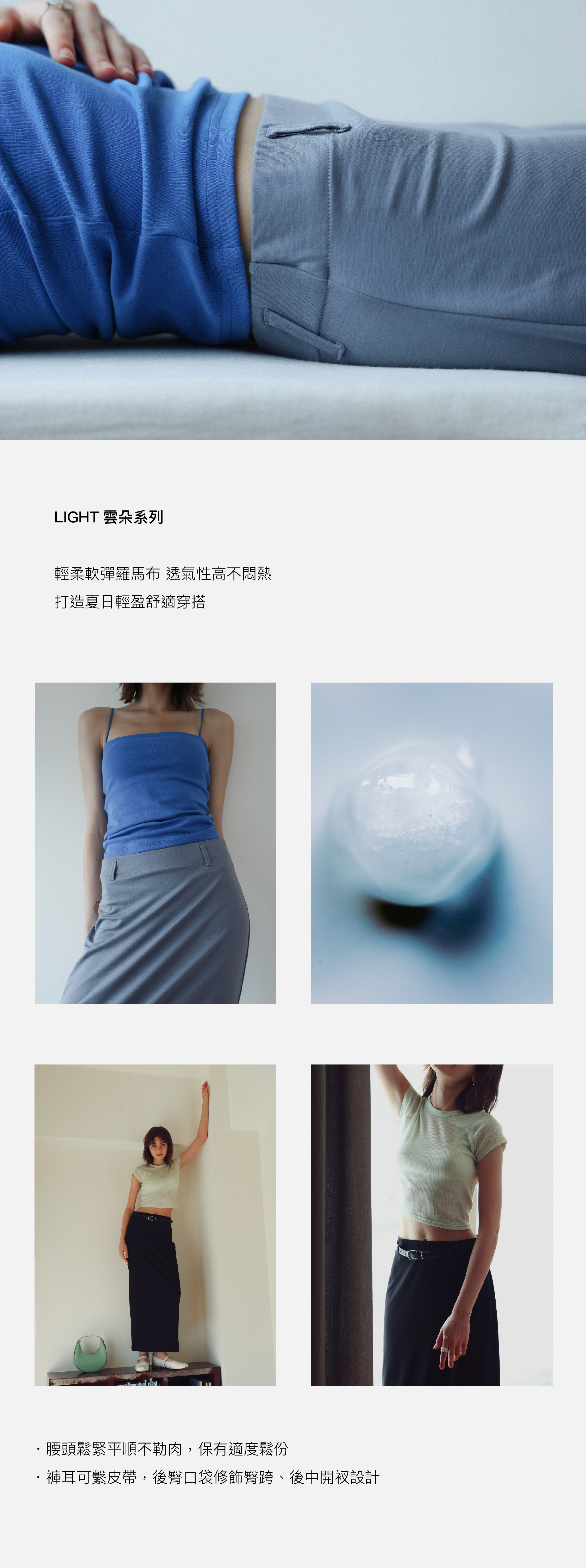 •LIGHT雲朵面料,輕柔軟彈羅馬布,體感舒適輕盈