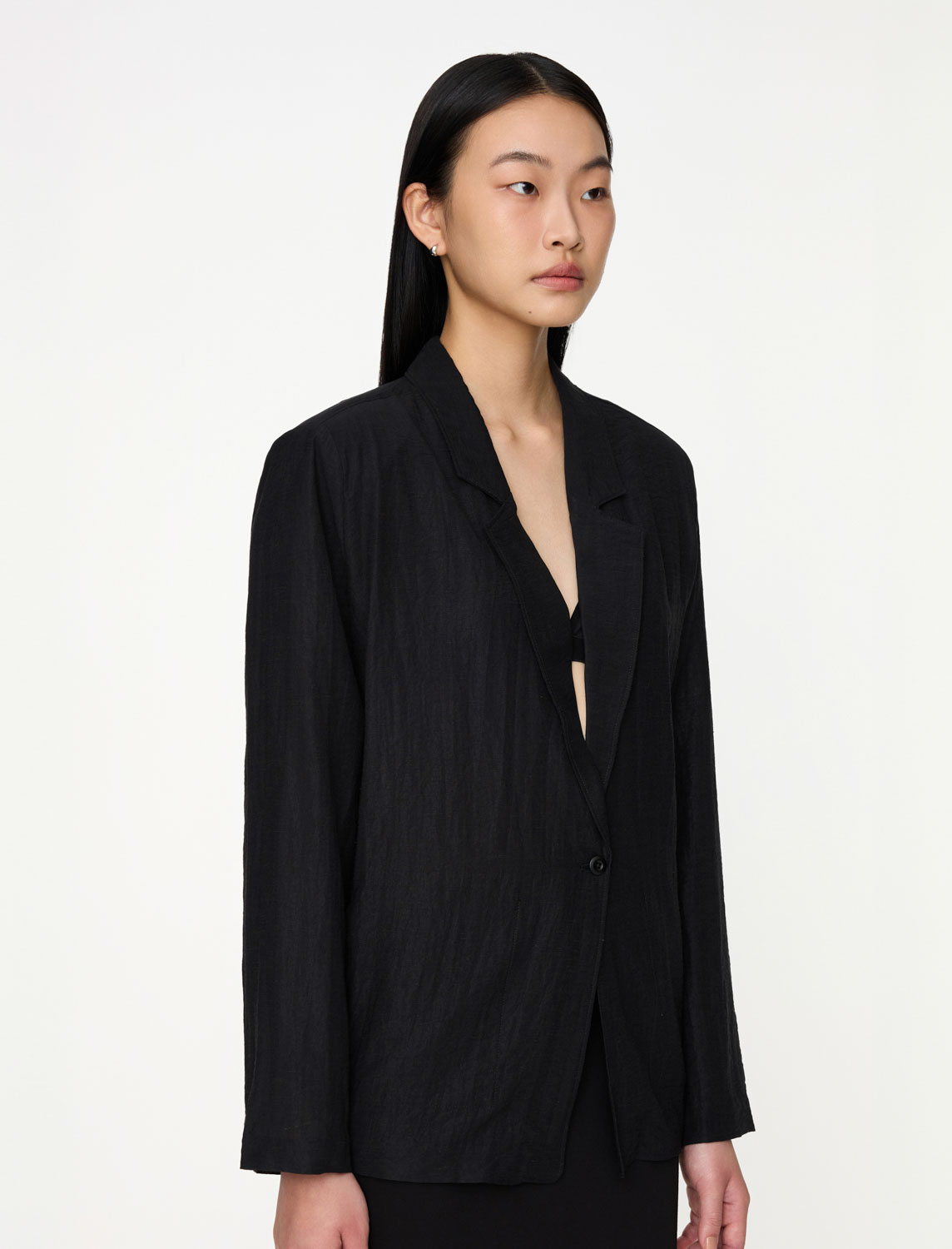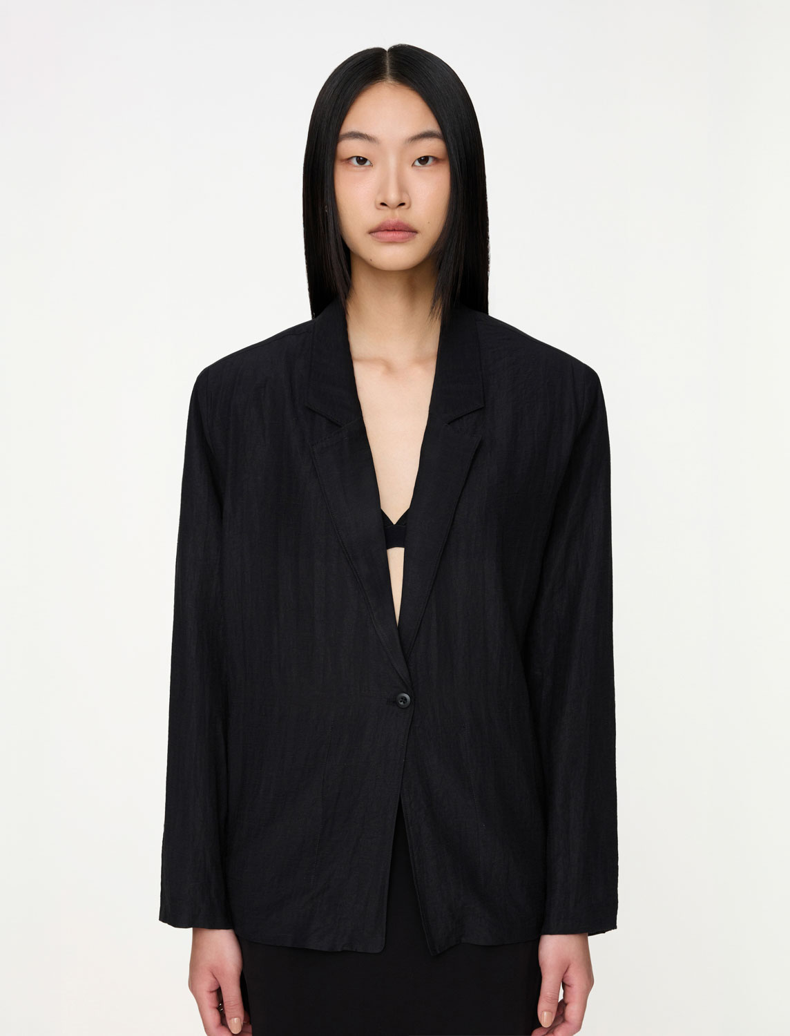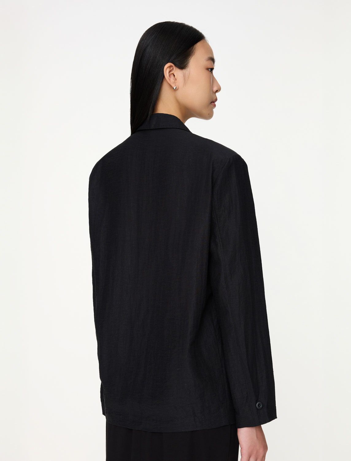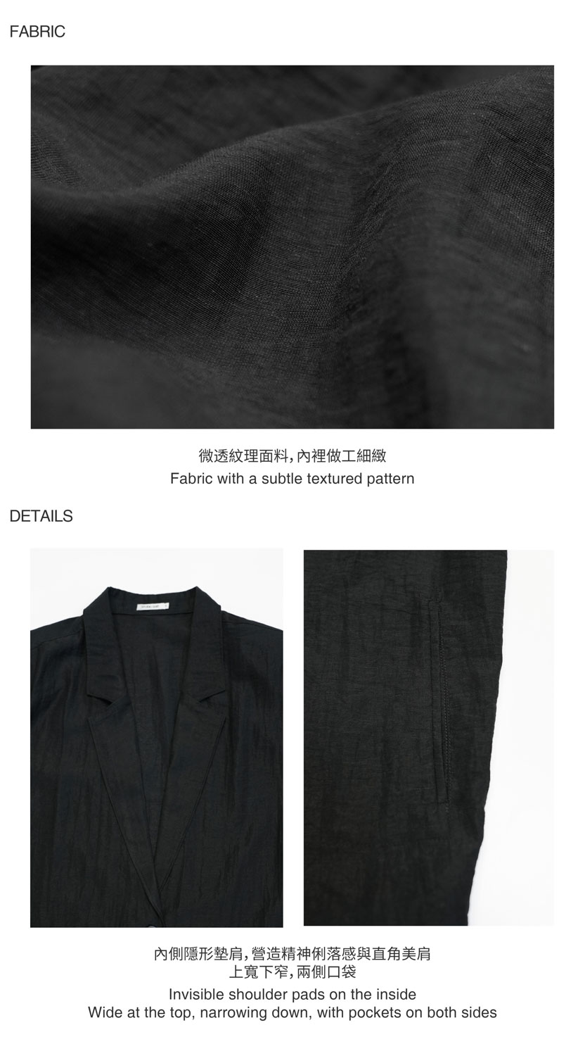•內側隱形墊肩,營造精神俐落感與直角美肩