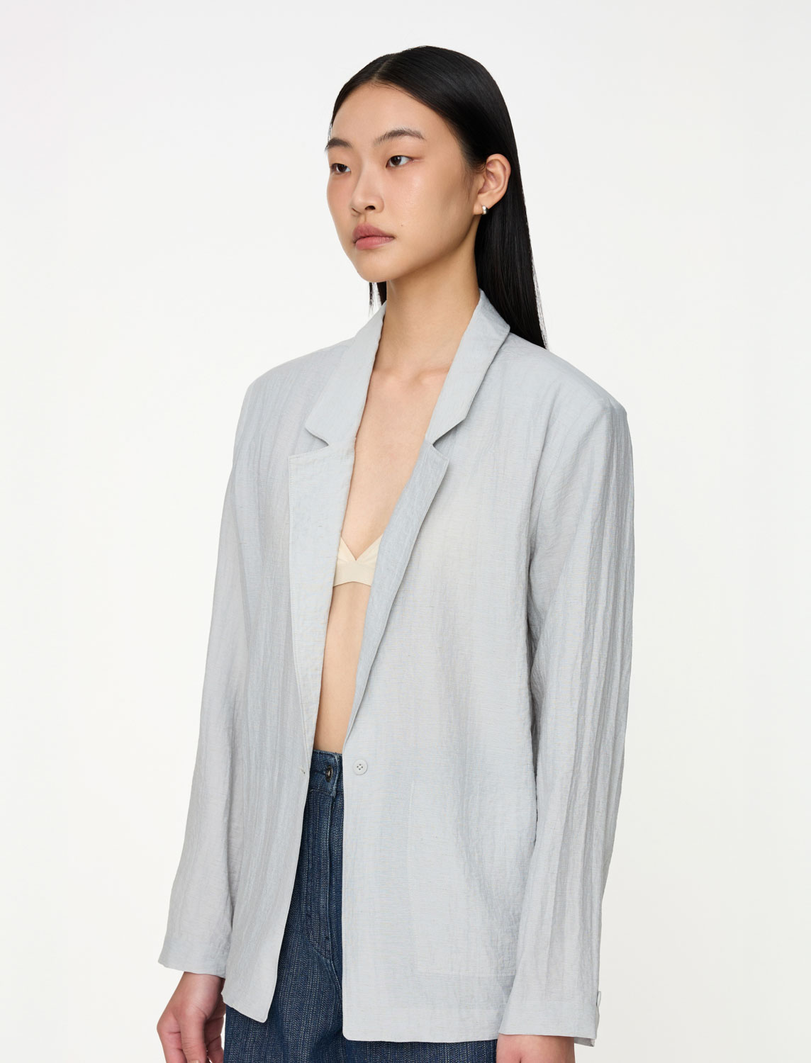 •內側隱形墊肩,營造精神俐落感與直角美肩