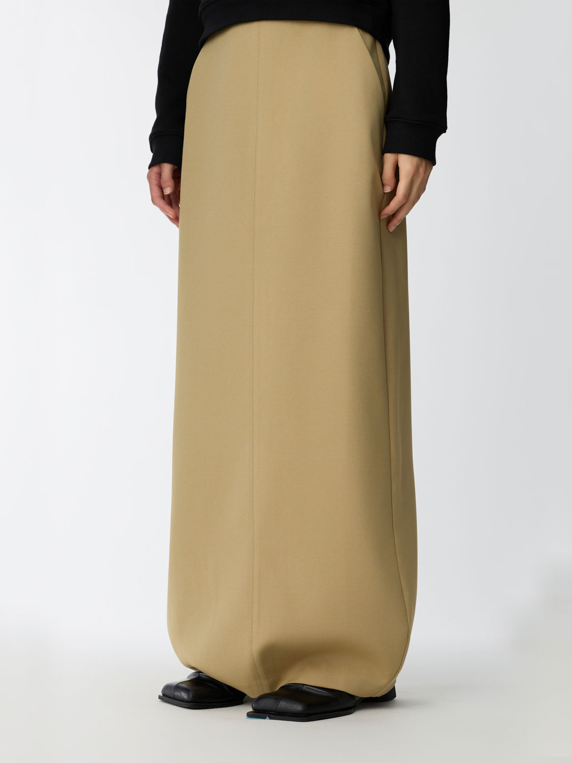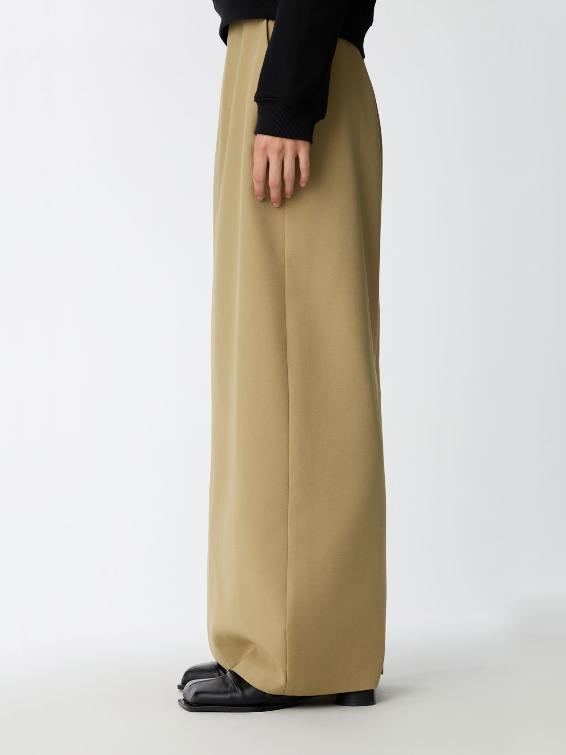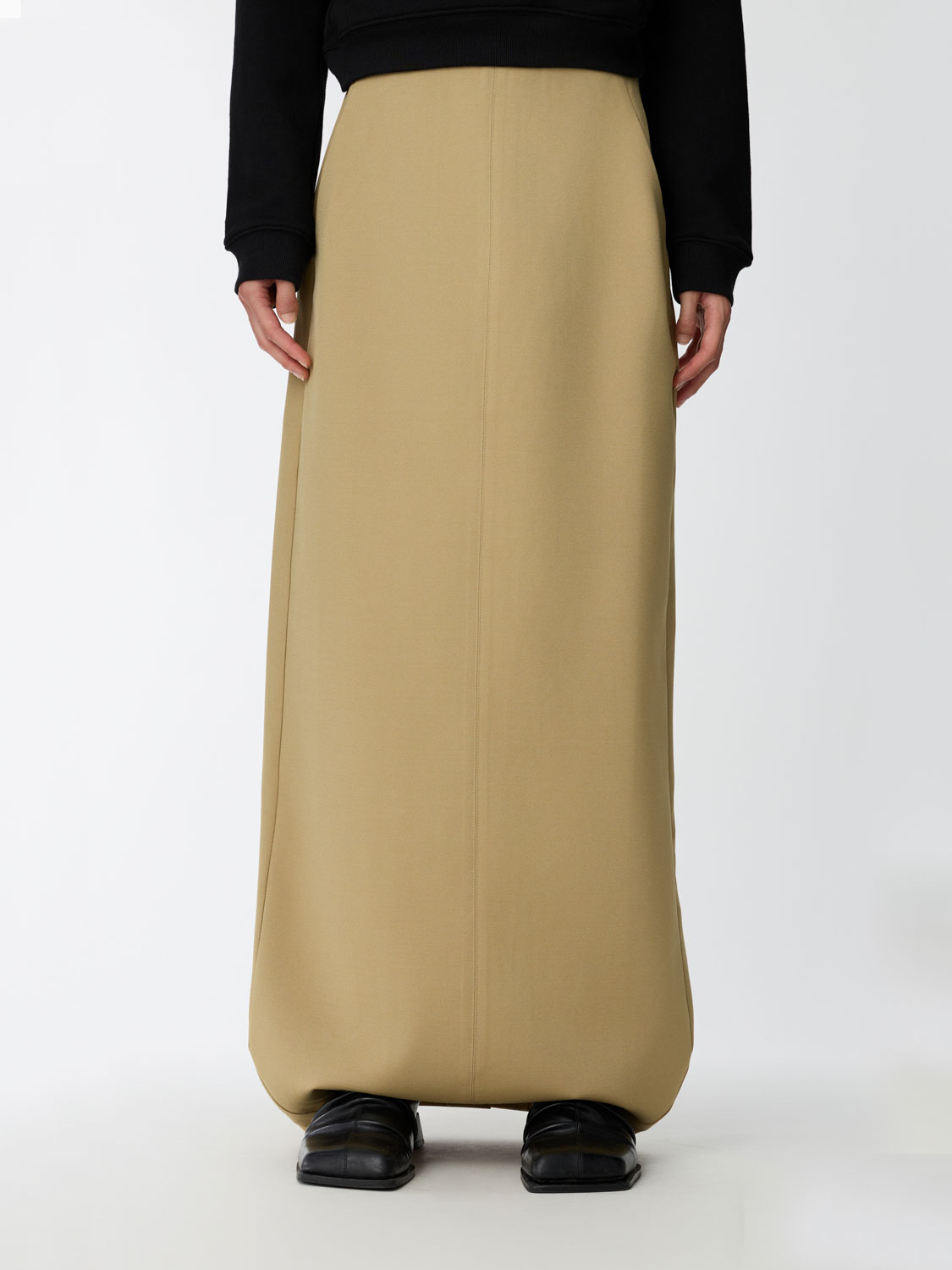 •直筒版型,結合下襬弧型收窄的鐘型設計