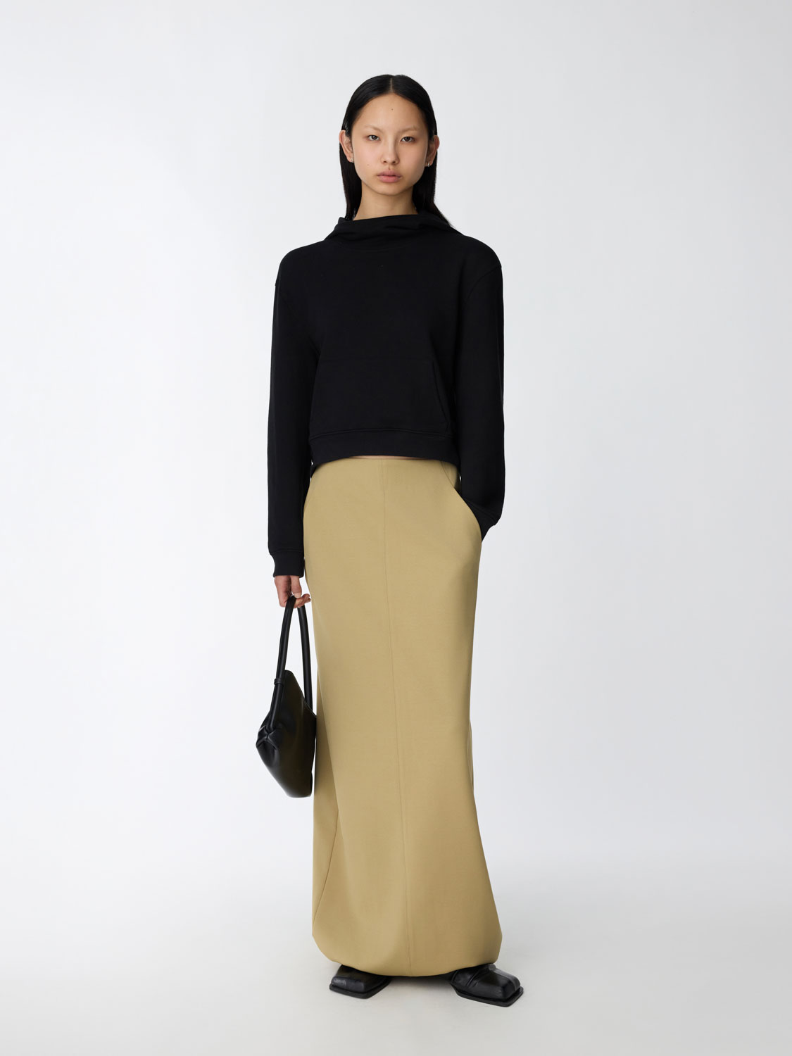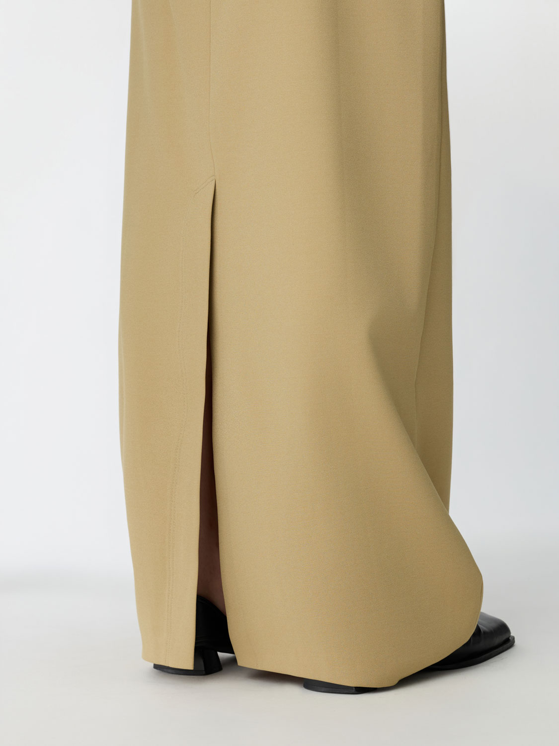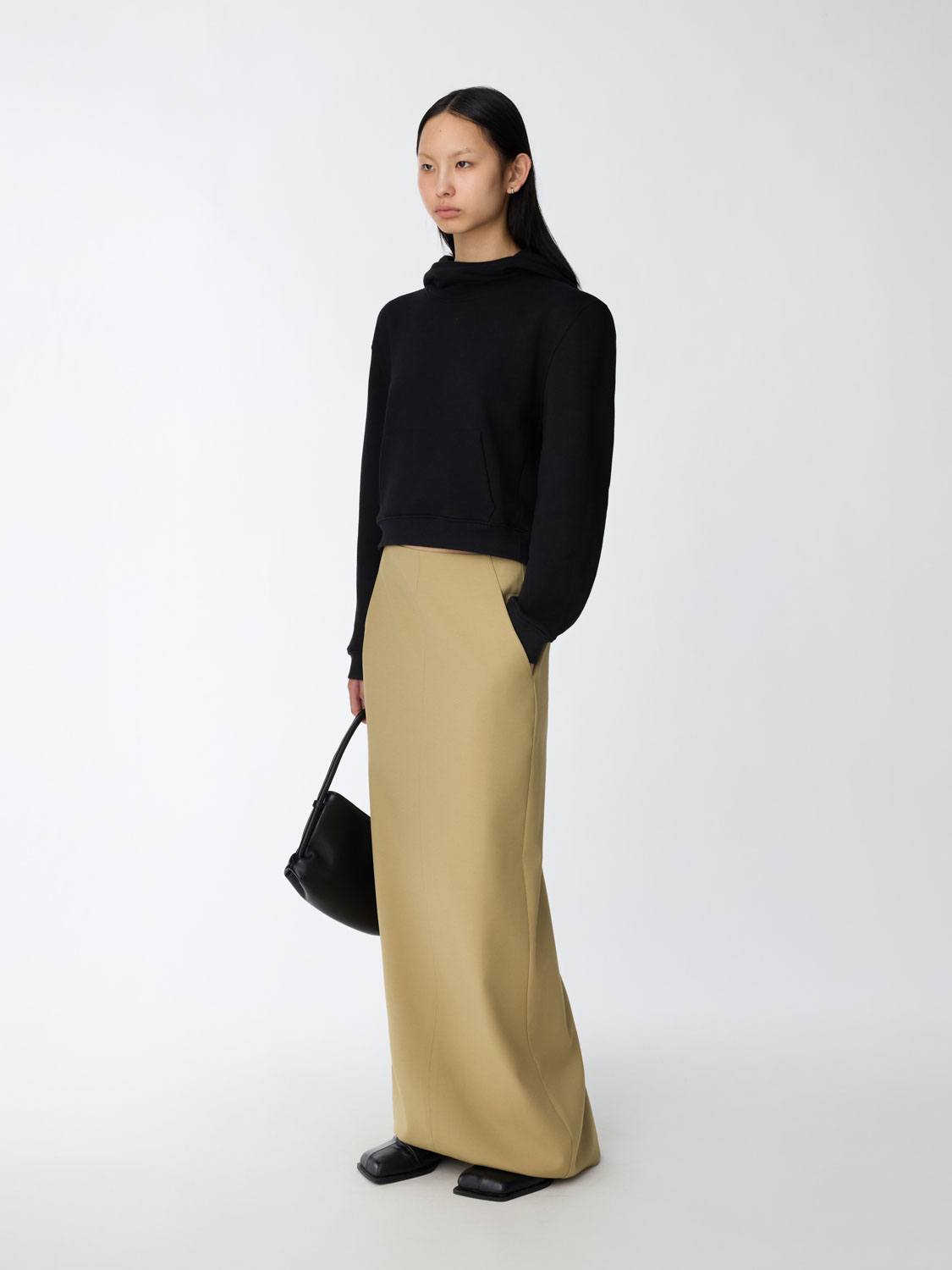•直筒版型,結合下襬弧型收窄的鐘型設計