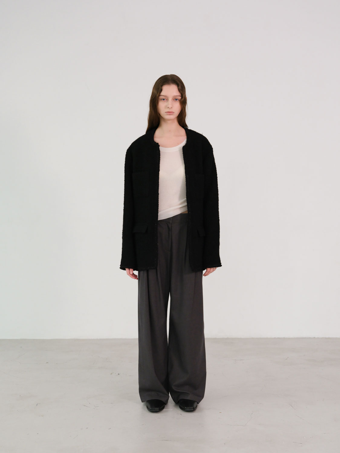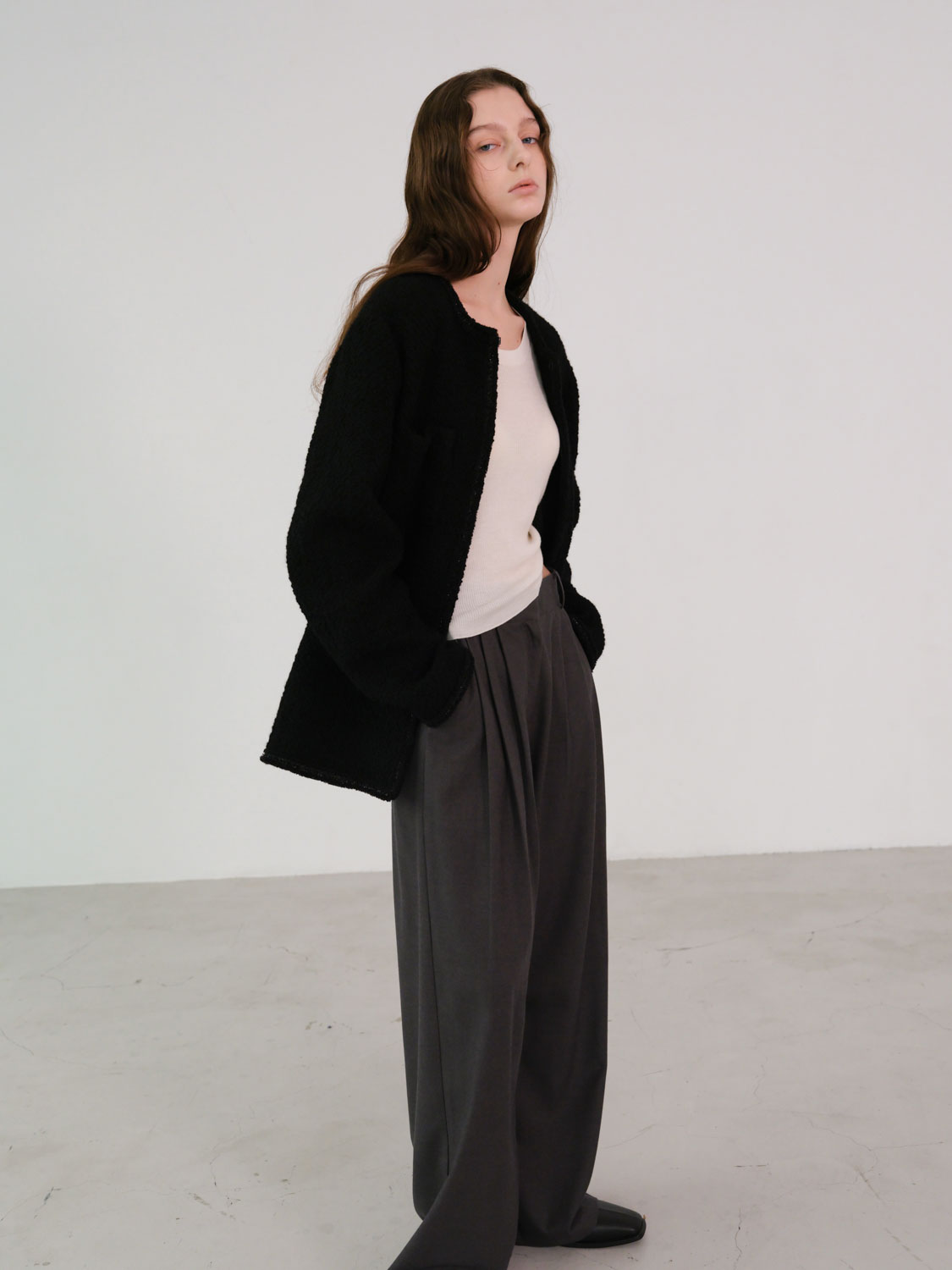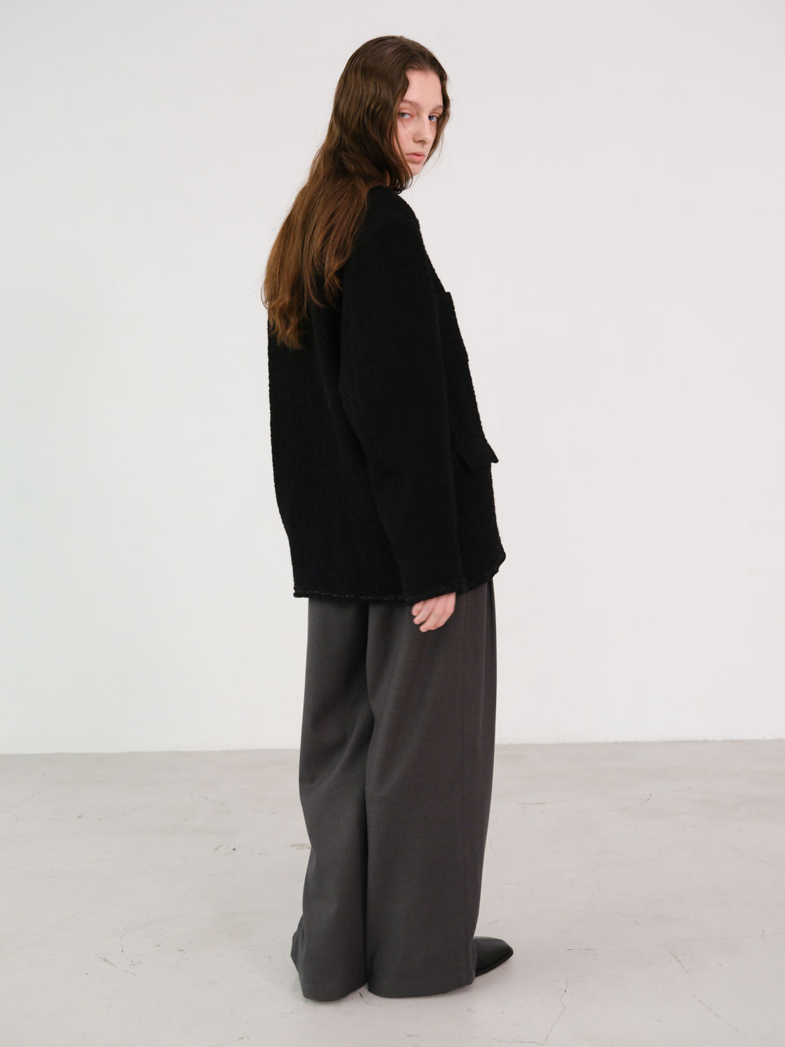 •輕絨磨毛面料結合三褶設計,呈現寬鬆褲型卻不過於隨便