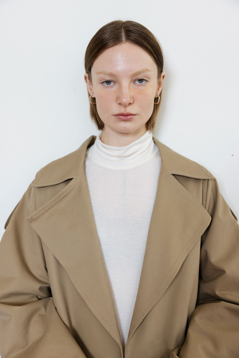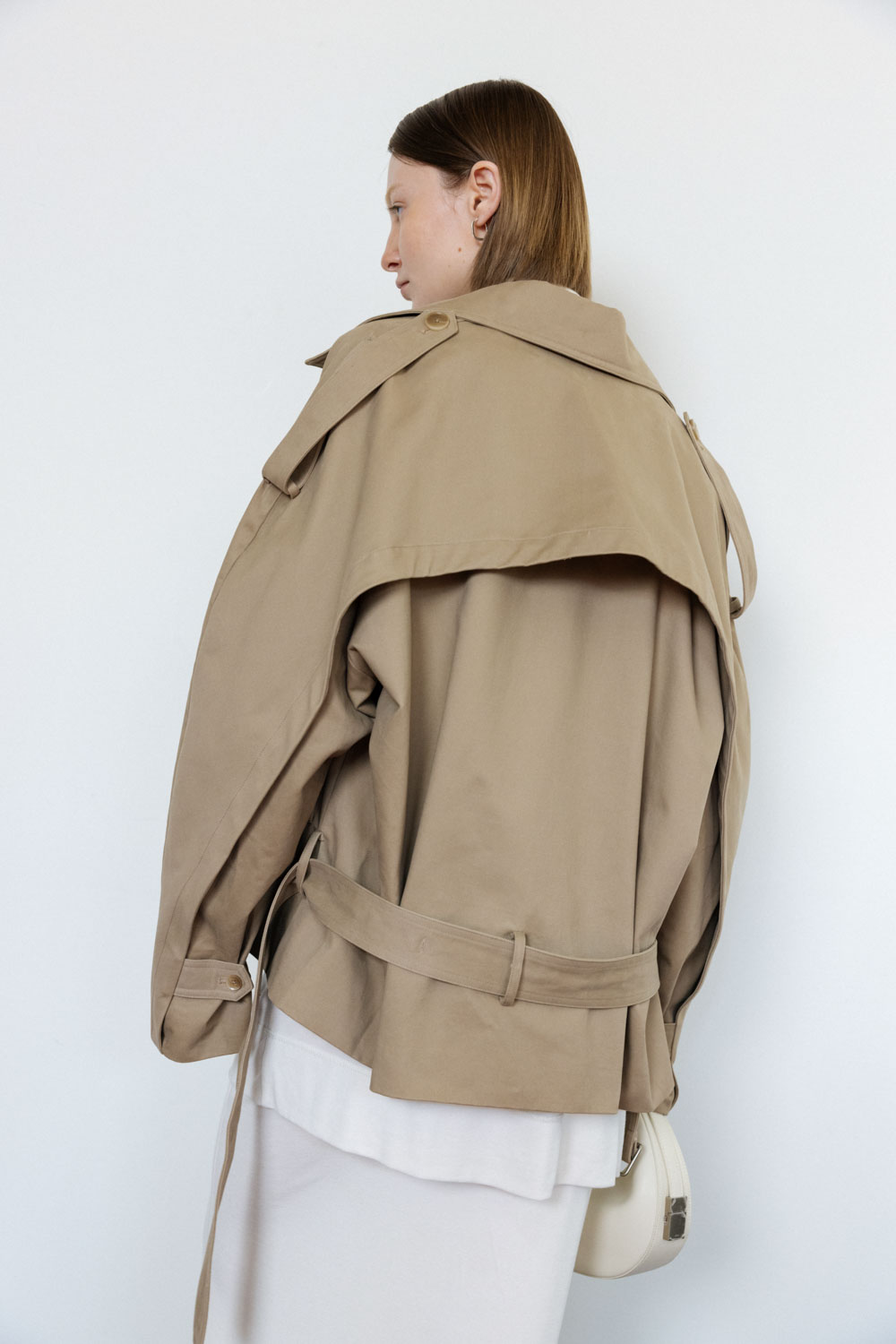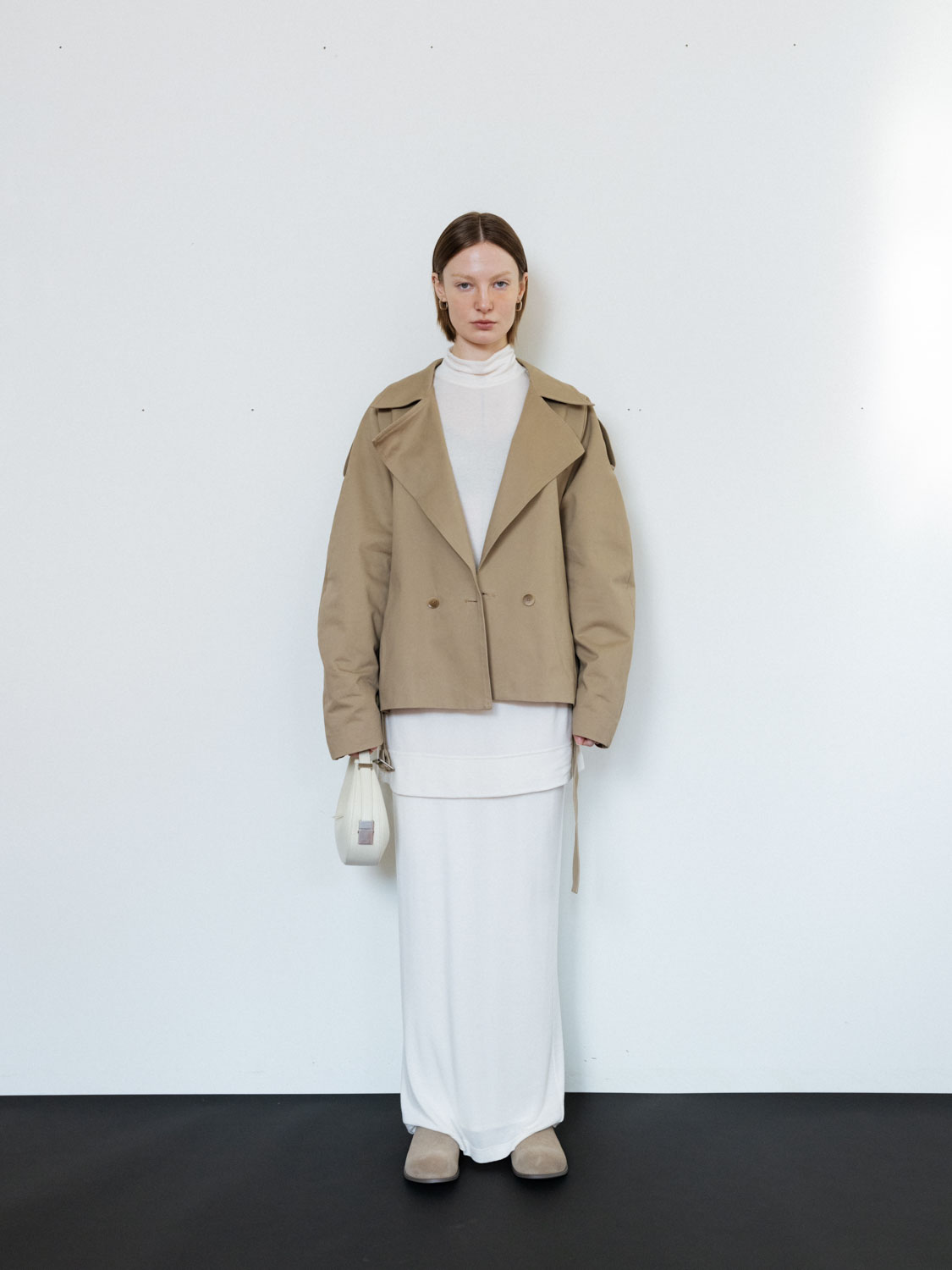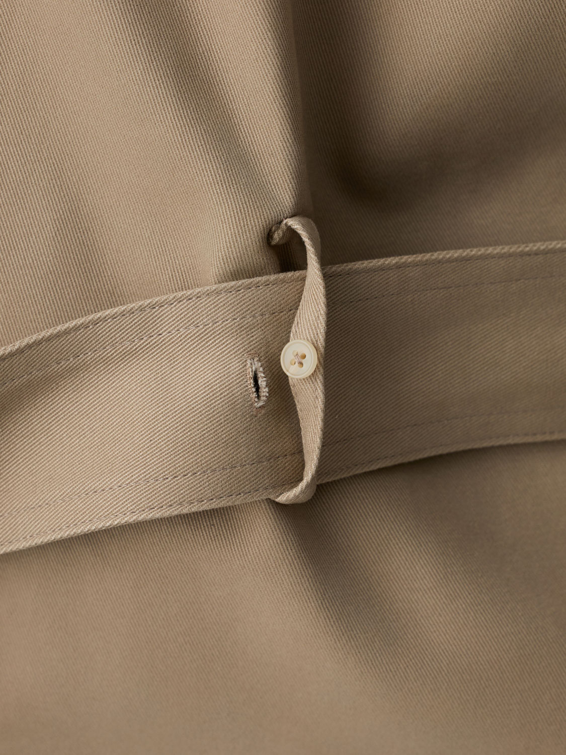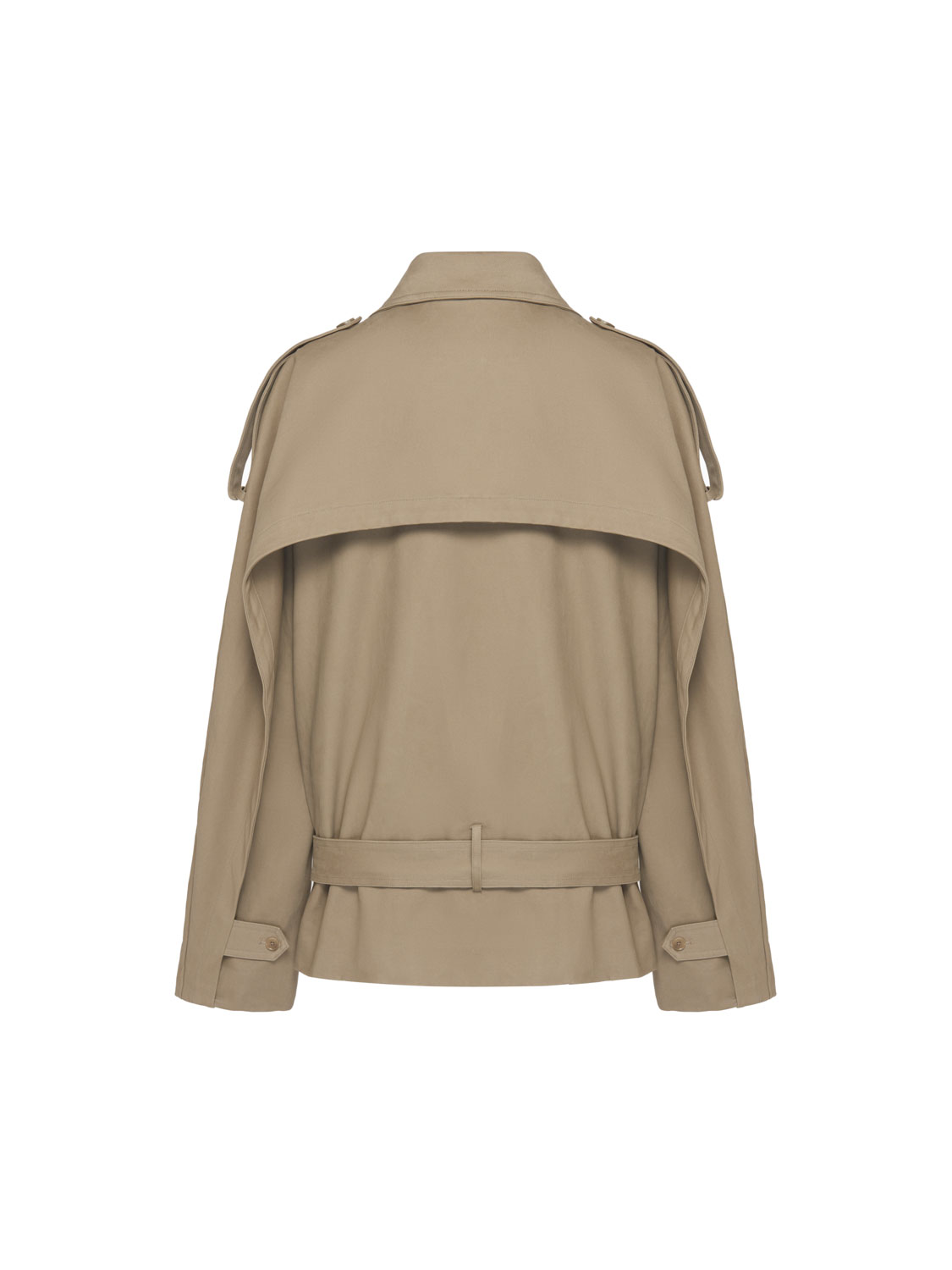 - Soft twill cotton material, anti-wrinkle and easy to take care of, the lining is made of skin-friendly thin soft cotton - The mid-length version is loose and straight, with good body tolerance - Large lapels and epaulette details, combined with sleeve cutting, have a wide layer, and the neckline can also be turned up into a high collar. - The collar and waistband are lowered, combined with double-breasted details, and the windshield on the back is integrated with the sleeve shape, giving the overall cocoon-shaped arc line. - There is a hidden zipper in the front pocket to store items safely - There is a small hidden buckle at the middle back waistband, allowing the belt to hang on the jacket and prevent it from slipping when walking.