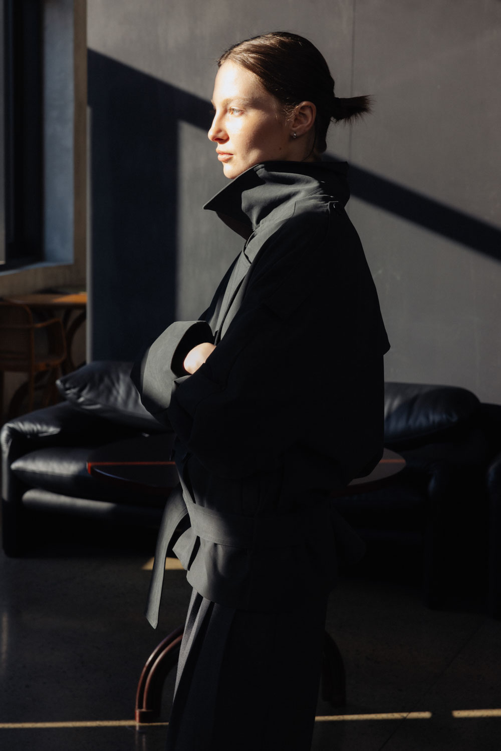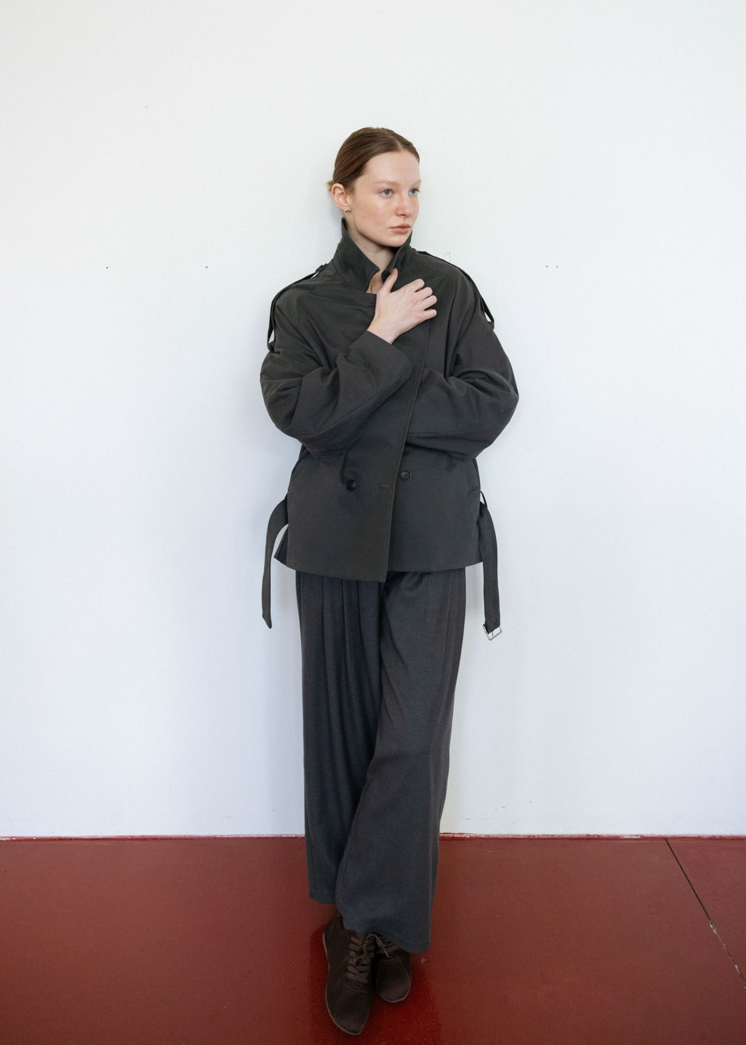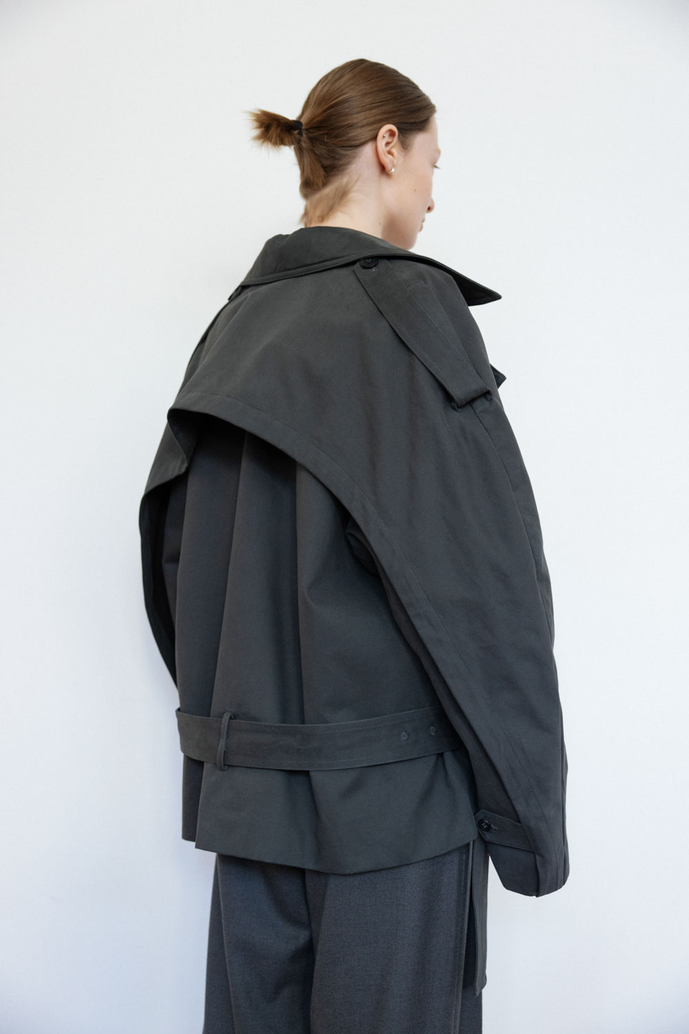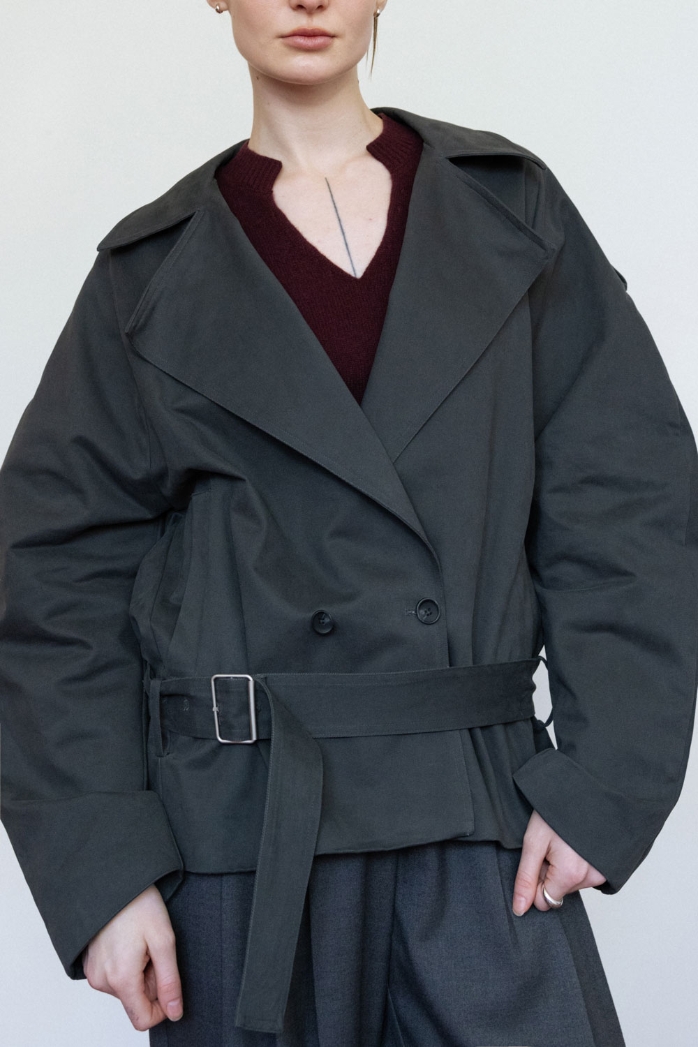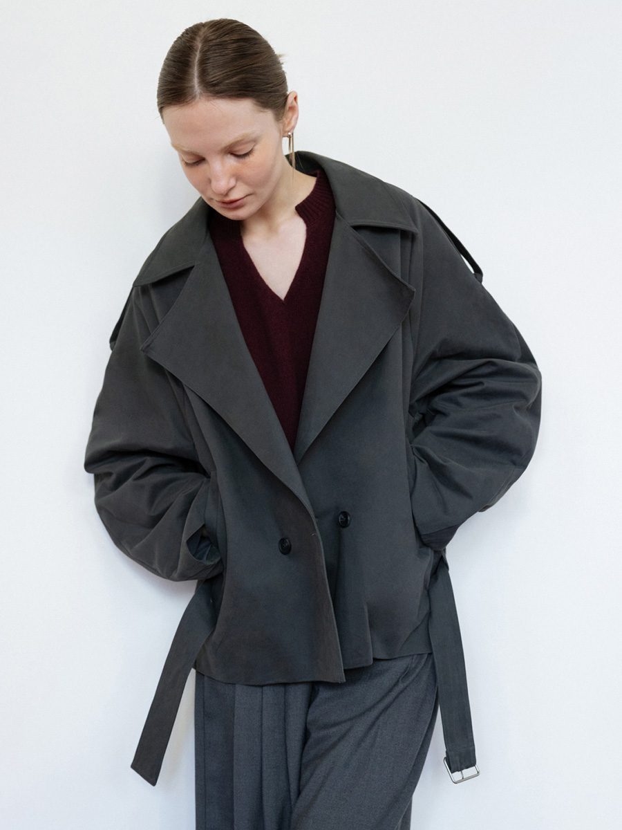 - Soft twill cotton material, anti-wrinkle and easy to take care of, the lining is made of skin-friendly thin soft cotton - The mid-length version is loose and straight, with good body tolerance - Large lapels and epaulette details, combined with sleeve cutting, have a wide layer, and the neckline can also be turned up into a high collar. - The collar and waistband are lowered, combined with double-breasted details, and the windshield on the back is integrated with the sleeve shape, giving the overall cocoon-shaped arc line. - There is a hidden zipper in the front pocket to store items safely - There is a small hidden buckle at the middle back waistband, allowing the belt to hang on the jacket and prevent it from slipping when walking.