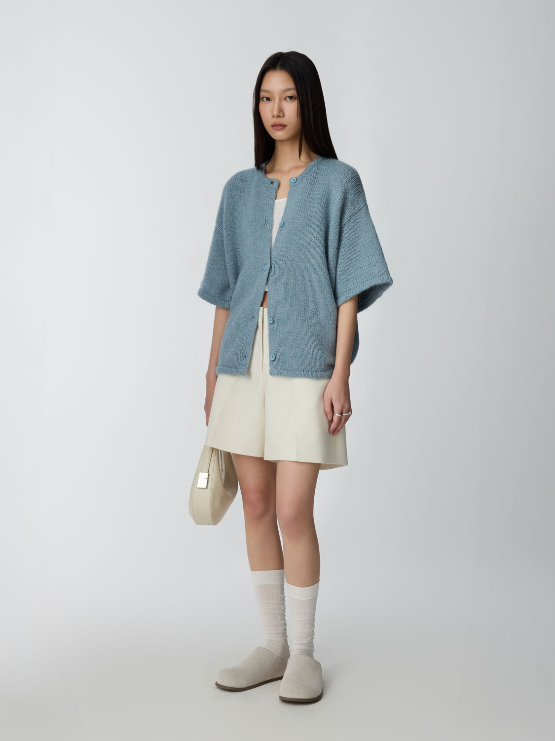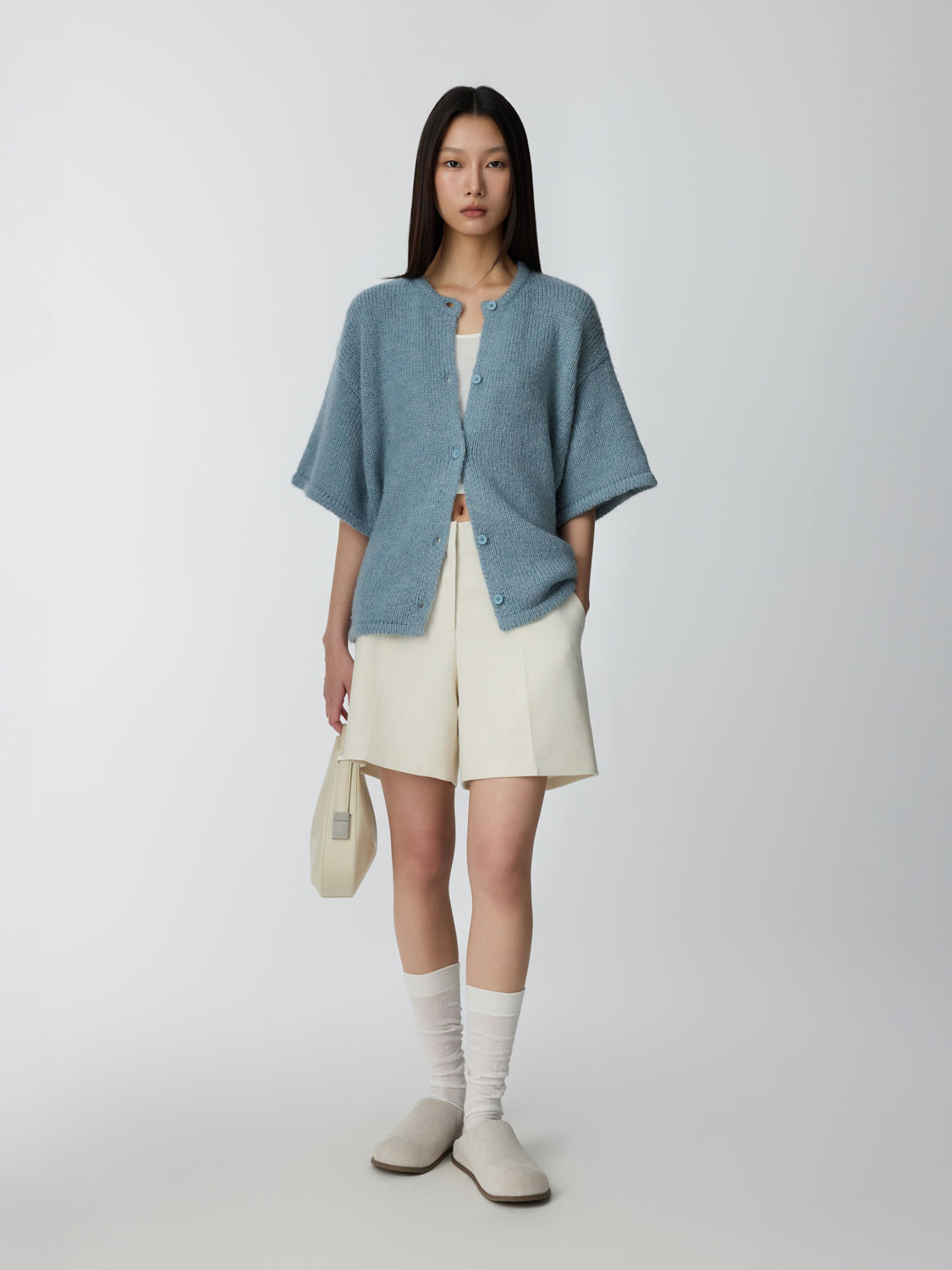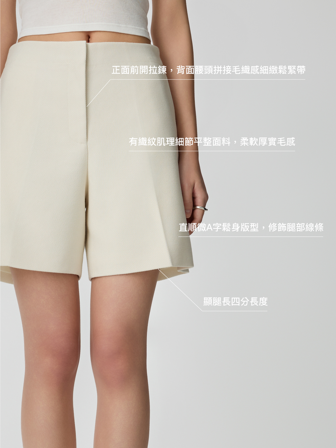 •選用有織紋肌理細節的平整面料,具有柔軟厚實毛感,內有親膚裡布