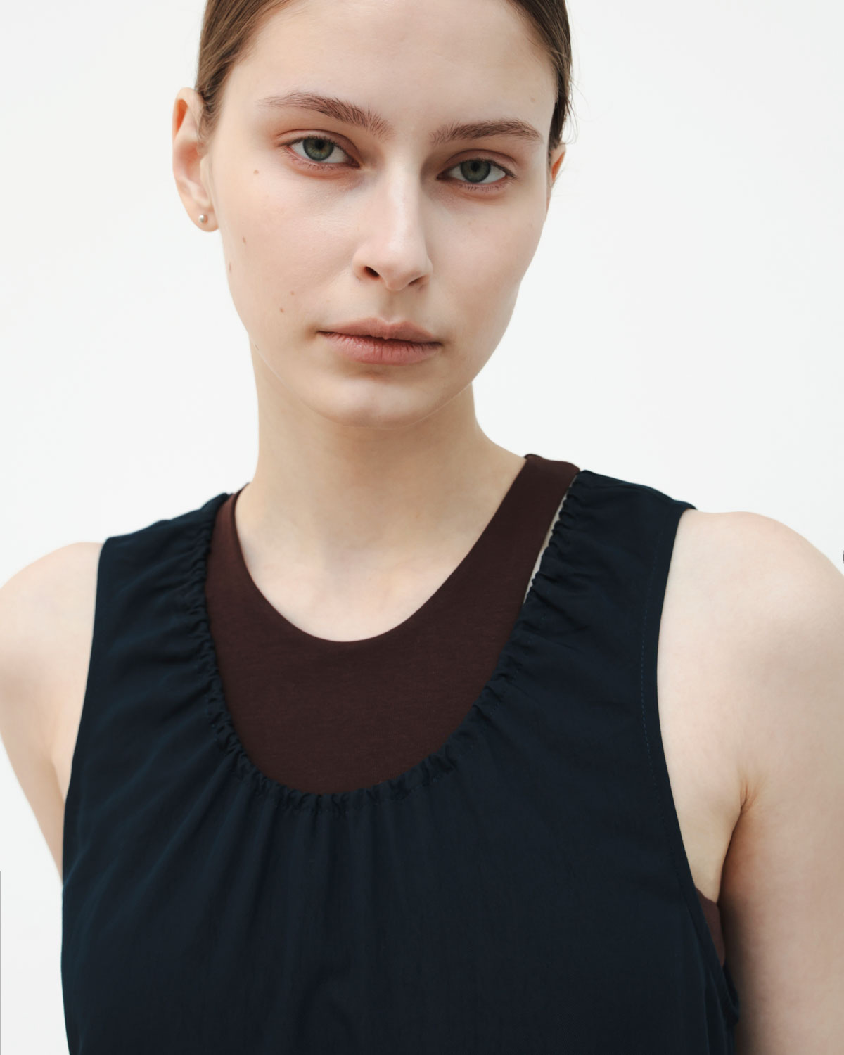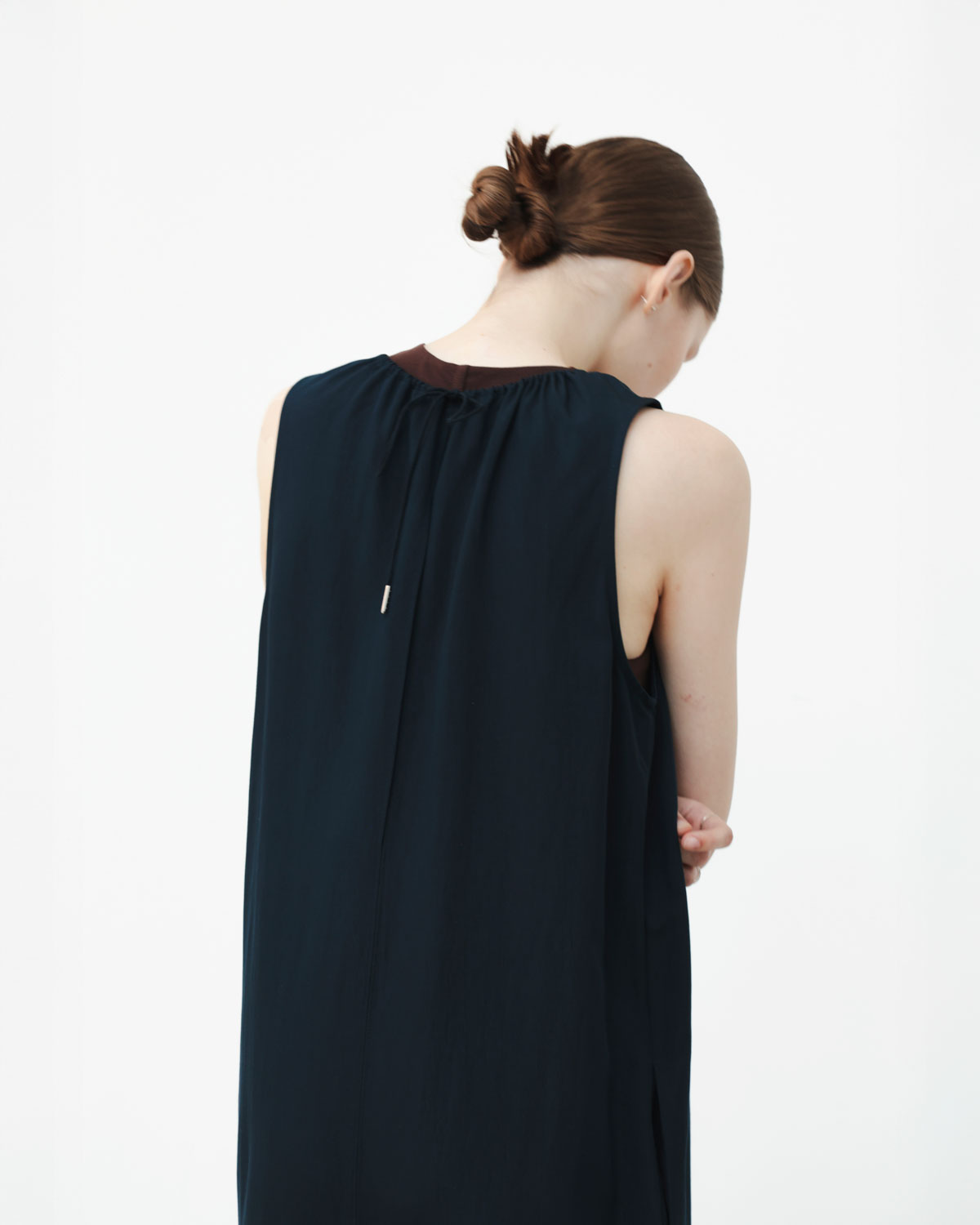 • 極簡俐落版型,深U領型結合低袖攏,營造沉穩個性