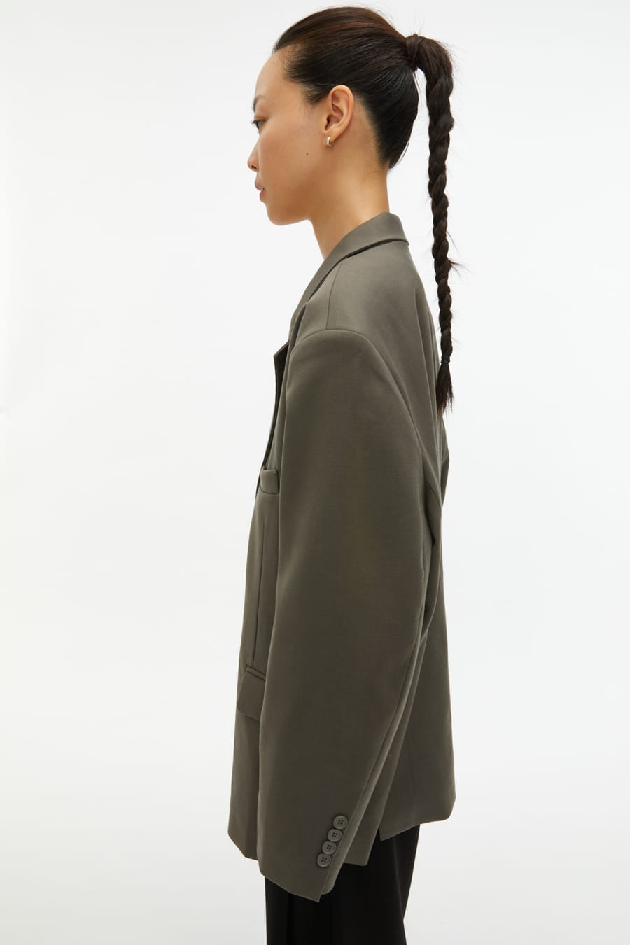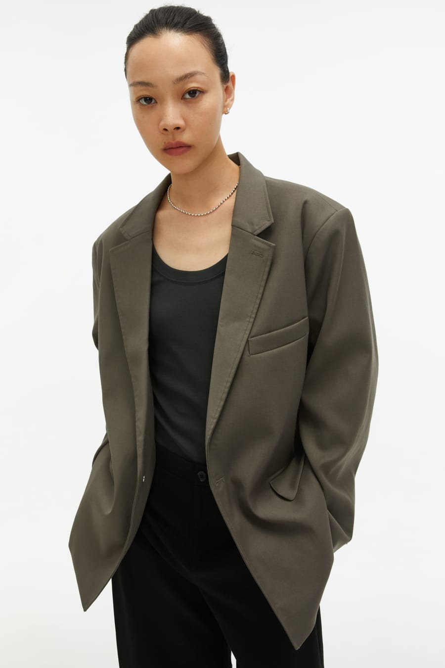 ・選用具高級質感的平整挺實面料,厚度適中,整體俐落時髦