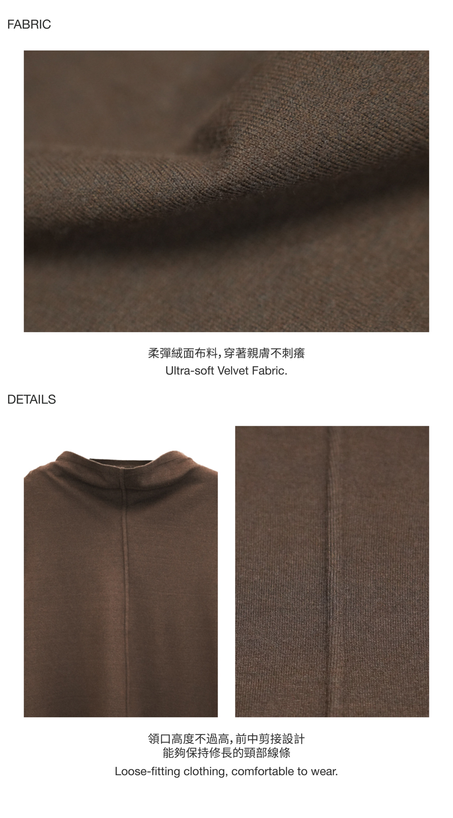C-line ・The straight-line box silhouette makes the wearer look minimalist and neat without unnecessary lines, and at the same time expresses right-angled shoulders and flattering arms. ・Super soft elastic suede fabric, skin-friendly and non-itchy when worn ・The body is loose, so it can be layered with fitted clothes to add a sense of layering ・Use the pattern to create a collar that hangs off the body, so it doesn’t strangle your neck when worn. ・The neckline is not too high and can maintain a slender neck line while being fashionable and stylish