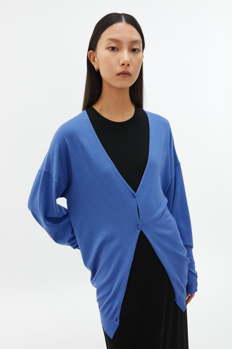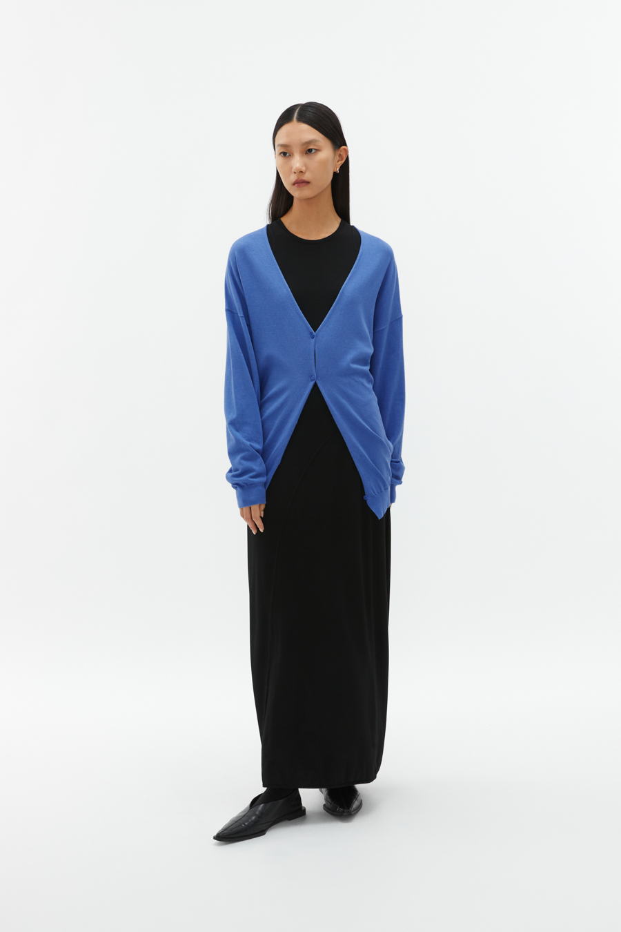 ・內捲邊大V領,極簡視覺效果疊搭不搶戲