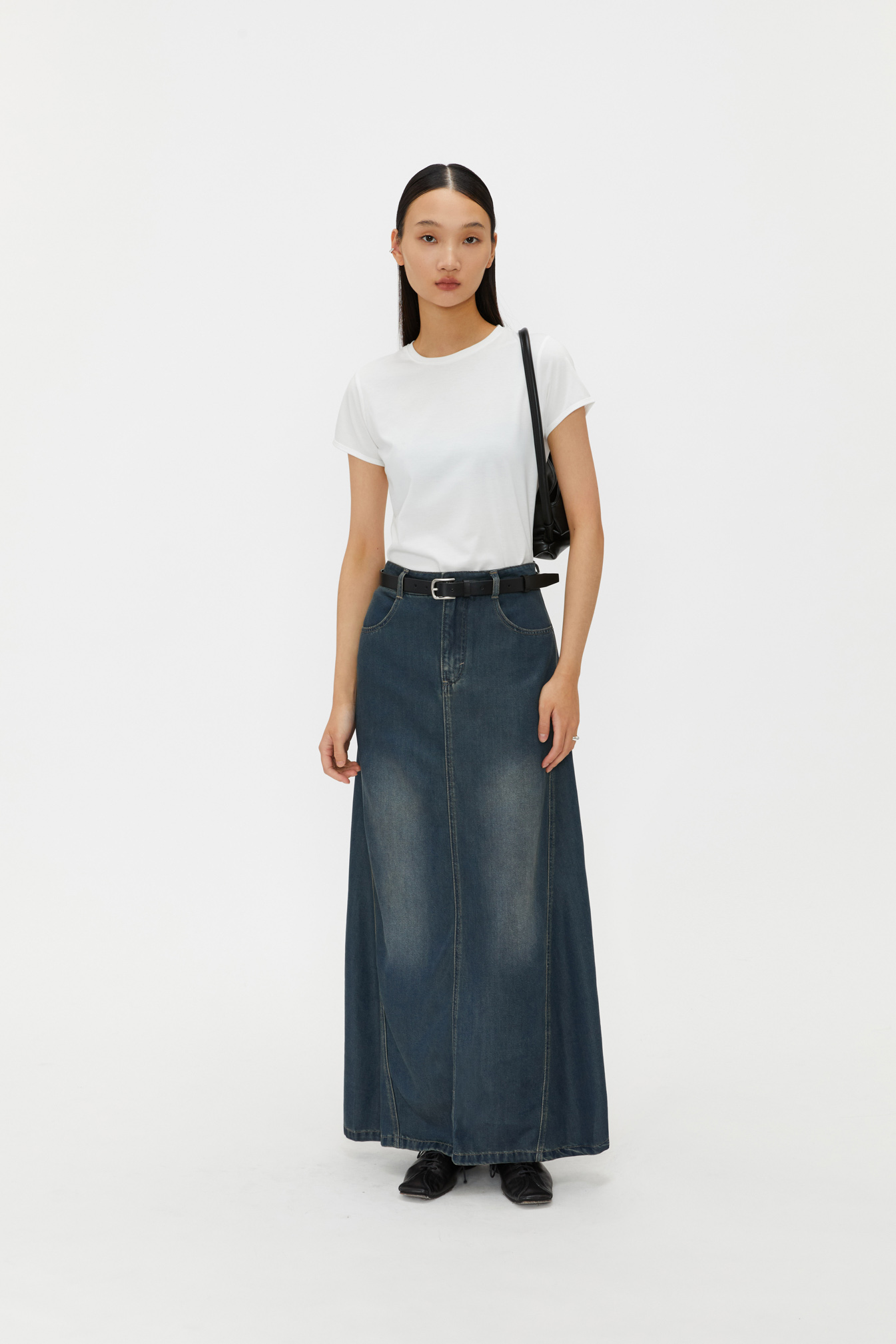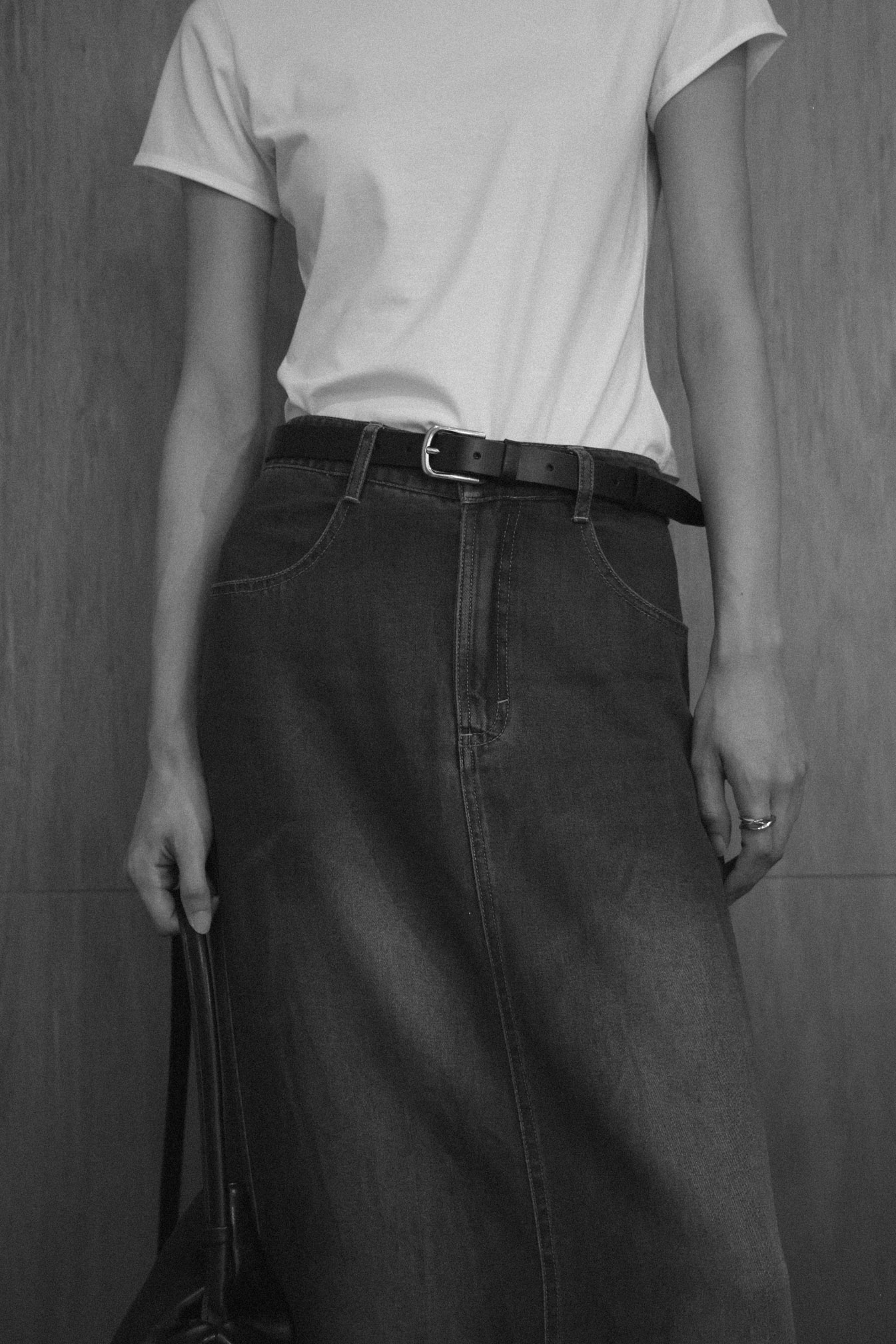 ・銅銀色粗帶釦細節,增添隨興風格