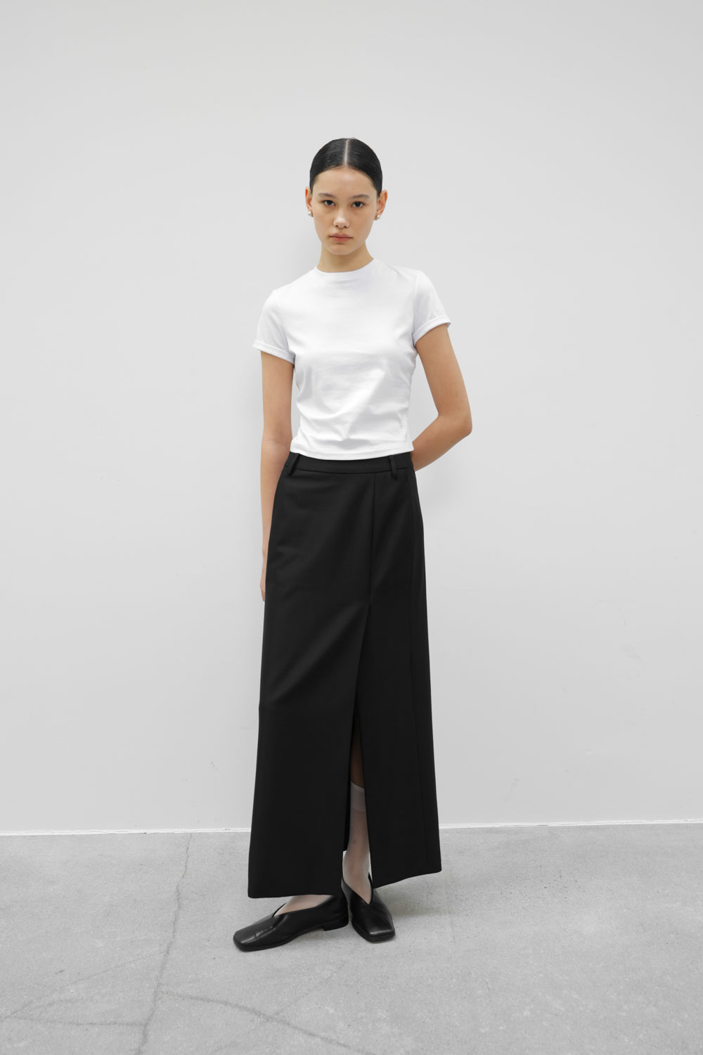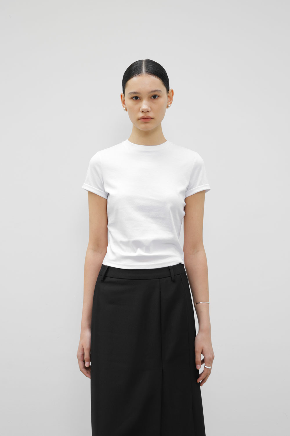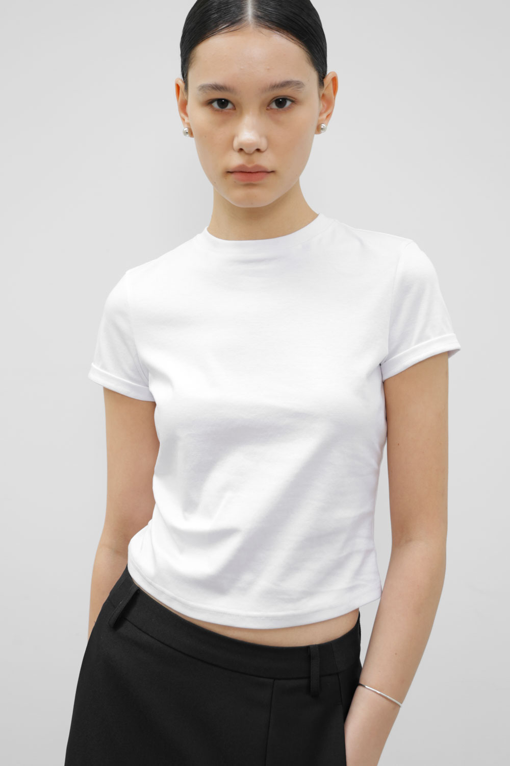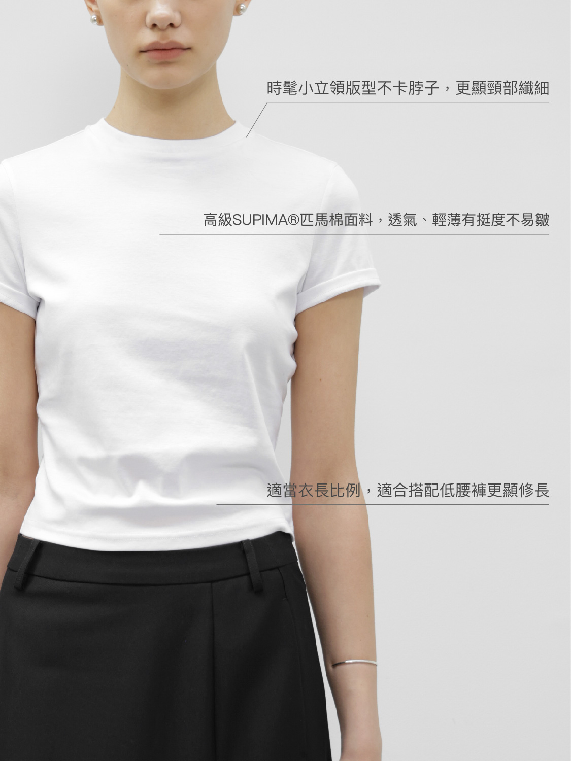 • 微露腰的修身衣長比例,適合搭配低腰褲